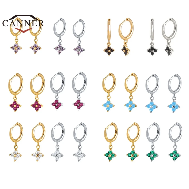 Женские серьги-кольца CANNER из стерлингового серебра 925 пробы с цветными бриллиантами, серьга из снежинки, серьги в стиле пирсинга, ювелирные изделия