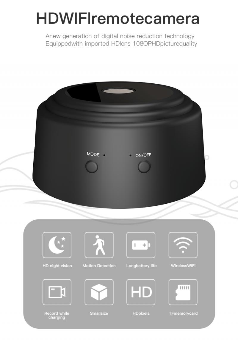 -Эта небольшая ванная комната с камерой имеет встроенный Магнит, может хорошо работать с любым железным материалом, легко разместить в любом месте. Эта небольшая камера оснащена жестким зарядным кабелем и волшебным основанием. Во время зарядки во время записи вы можете вручную повернуть угол записи на 360 градусов.