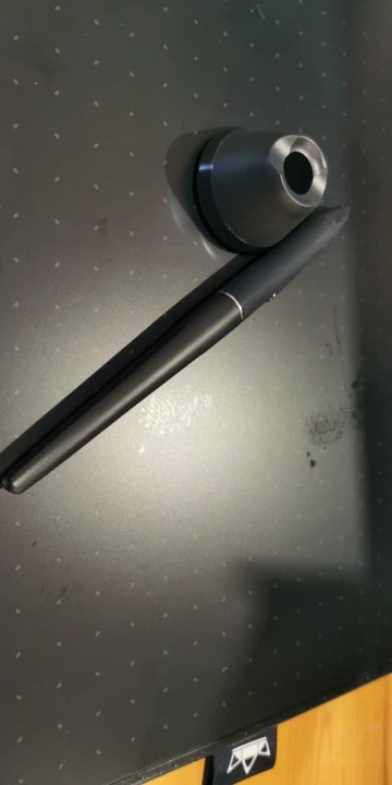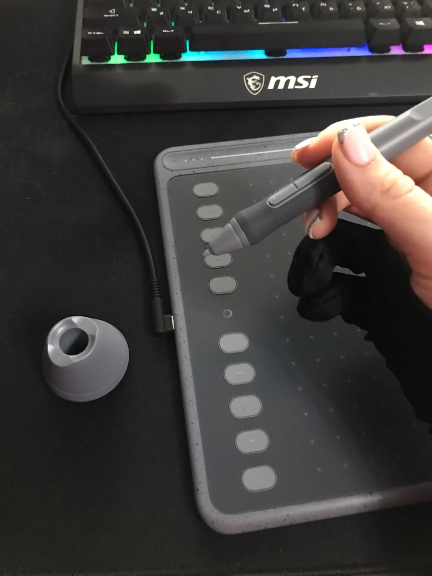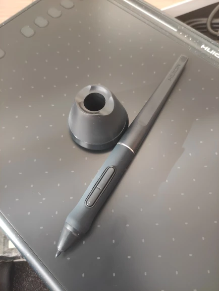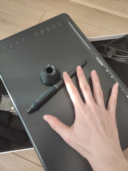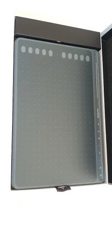 Огромный, и это самый жирный плюс. Доп кнопки легко настроить, есть профили, возможность настроить режимы работы пера. Выглядит хлюпким, но на деле крепкий, ничего не люфтит. Перо большое, удобное, резиновая вставка, не скользит. Доволен очень, рекомендую.