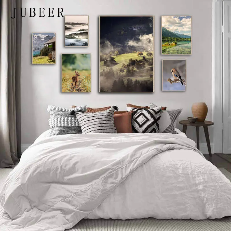 Скандинавский стиль пейзаж настенные картины олень стены искусства ...