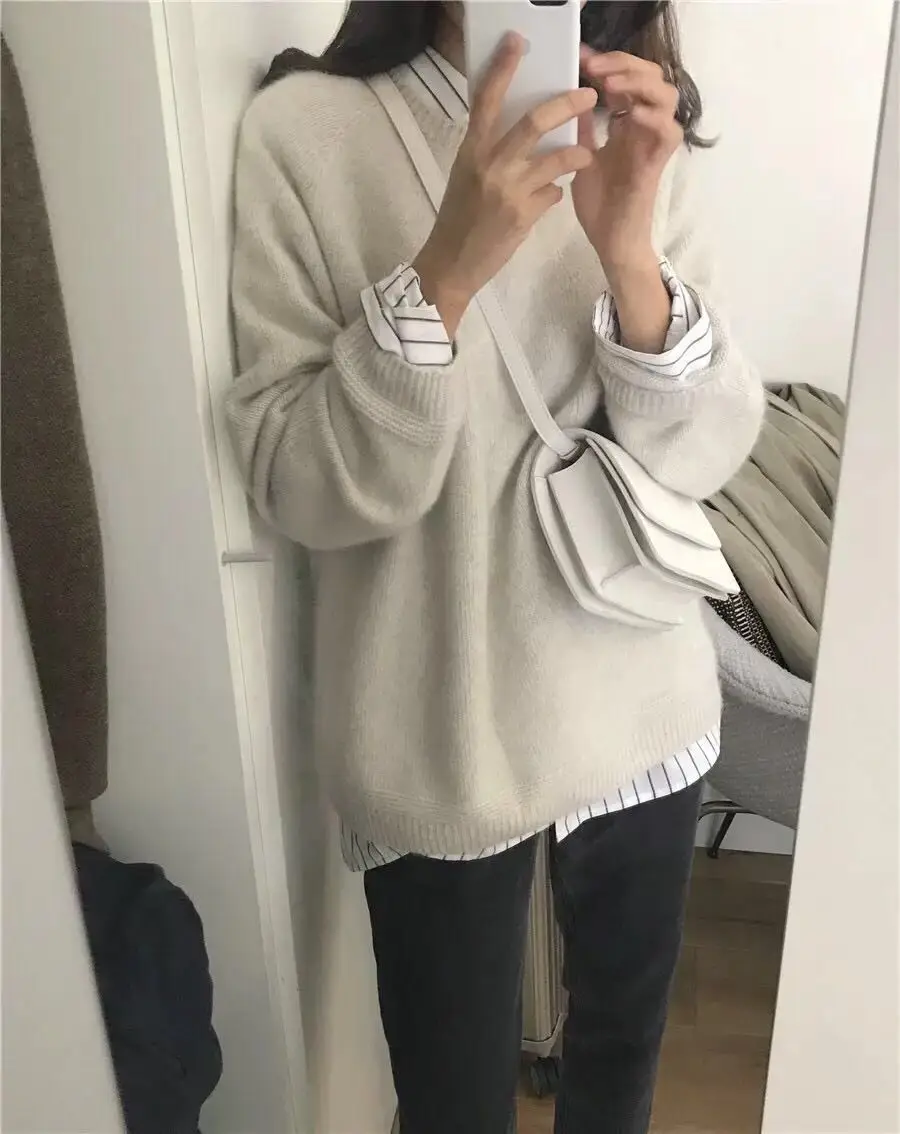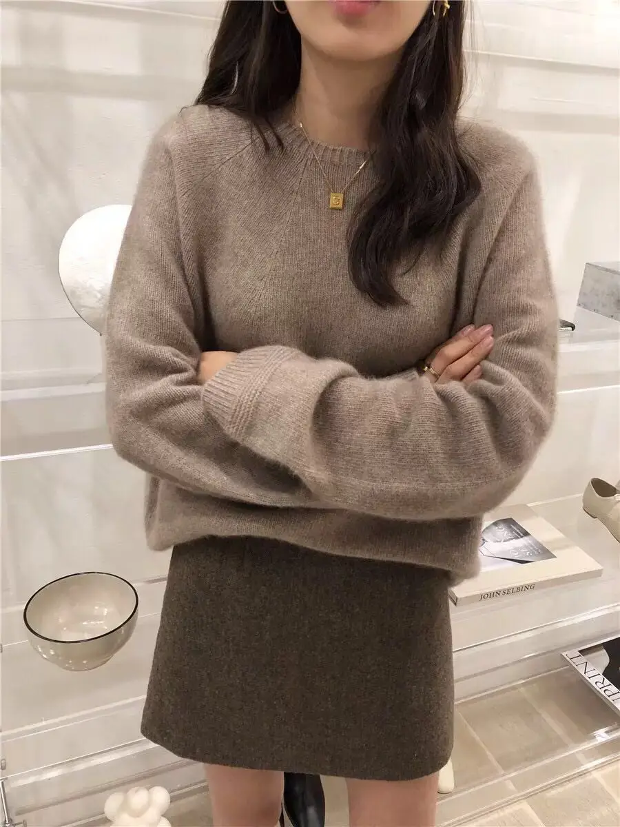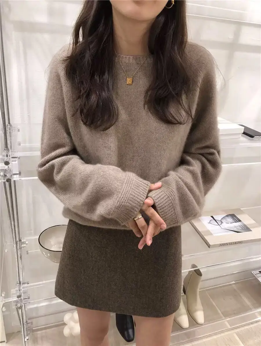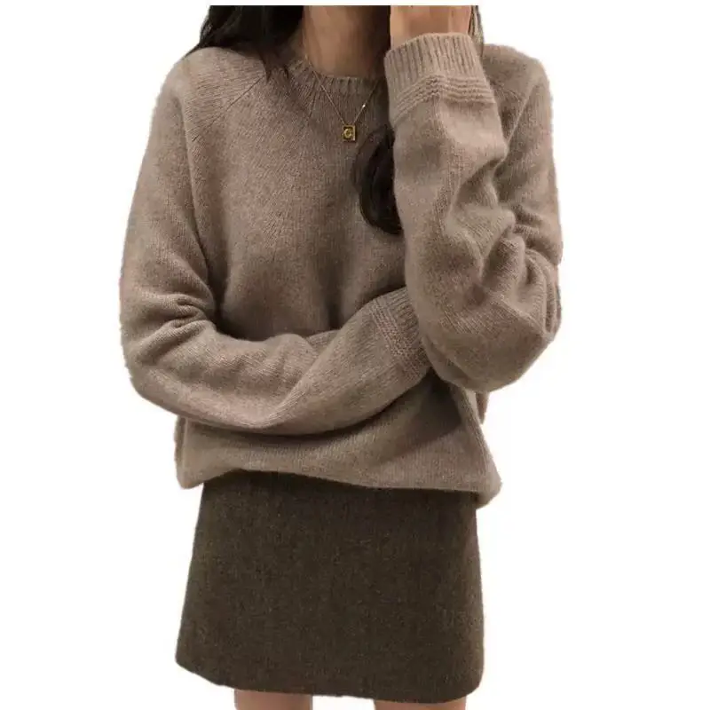 Осенне-зимний 100% кашемировый и шерстяной свитер с круглым вырезом, Женская свободная вязаная одежда большого размера для девочек, топы, стандартная верхняя одежда