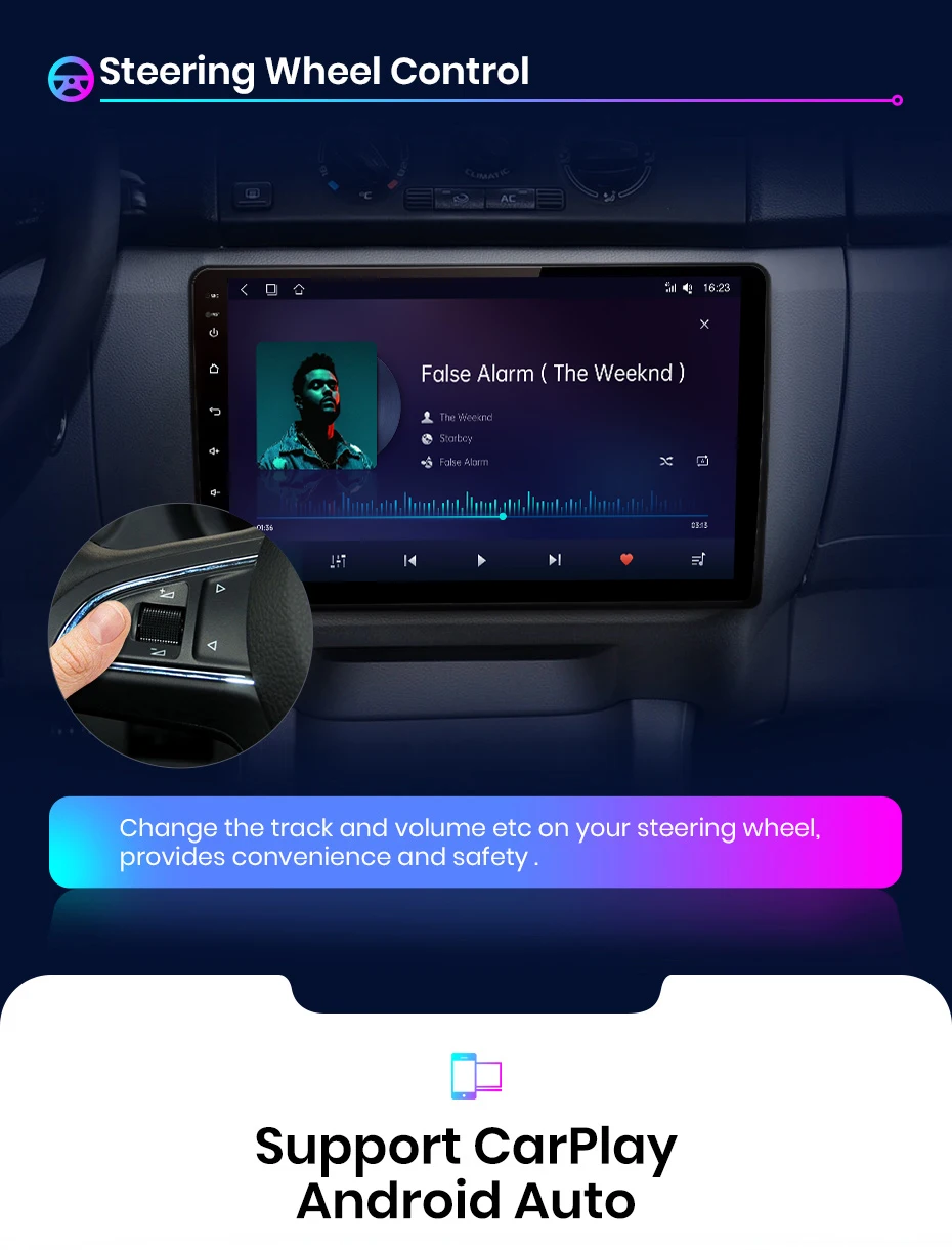 Необходимо использовать только usb-кабель для соединения телефона и радио, управления и управления мобильными телефонами через устройство, откройте безопасную жизнь вождения.PS: V1Pro поддерживает CarPlay и Android Auto (свяжитесь с нами для активации);V1: Поддержка Android Auto нажмите на следующую картинку, чтобы купить;V1C: Не поддерживайте оба товара;