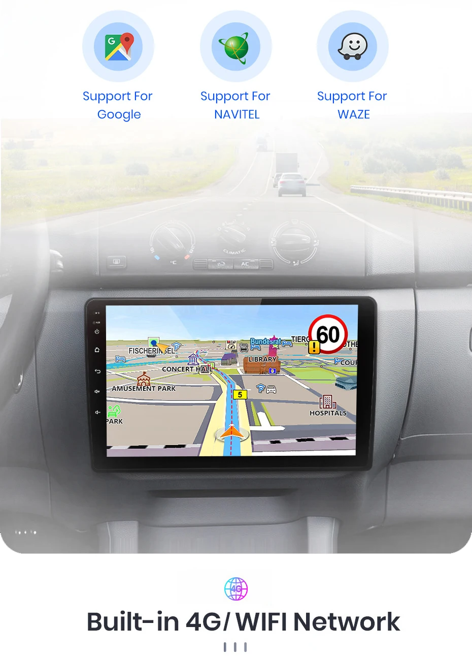> Основные функции: Android 10,0 + 9 дюймов IPS Экран + 4 ядра 1,2 ГГц (восемь ядер 1,8 ГГц Dual Core опция) + флэш-память DDR3 1 Гб (2 ГБ/4 ГБ/6 ГБ/8 Гб опционально) + память 16 Гб (32 ГБ/64 Гб/128 Гб опционально) + WIFI (4G сеть опционально) + зеркальная связь + управление рулевым колесом + RDS/DSP (опционально)