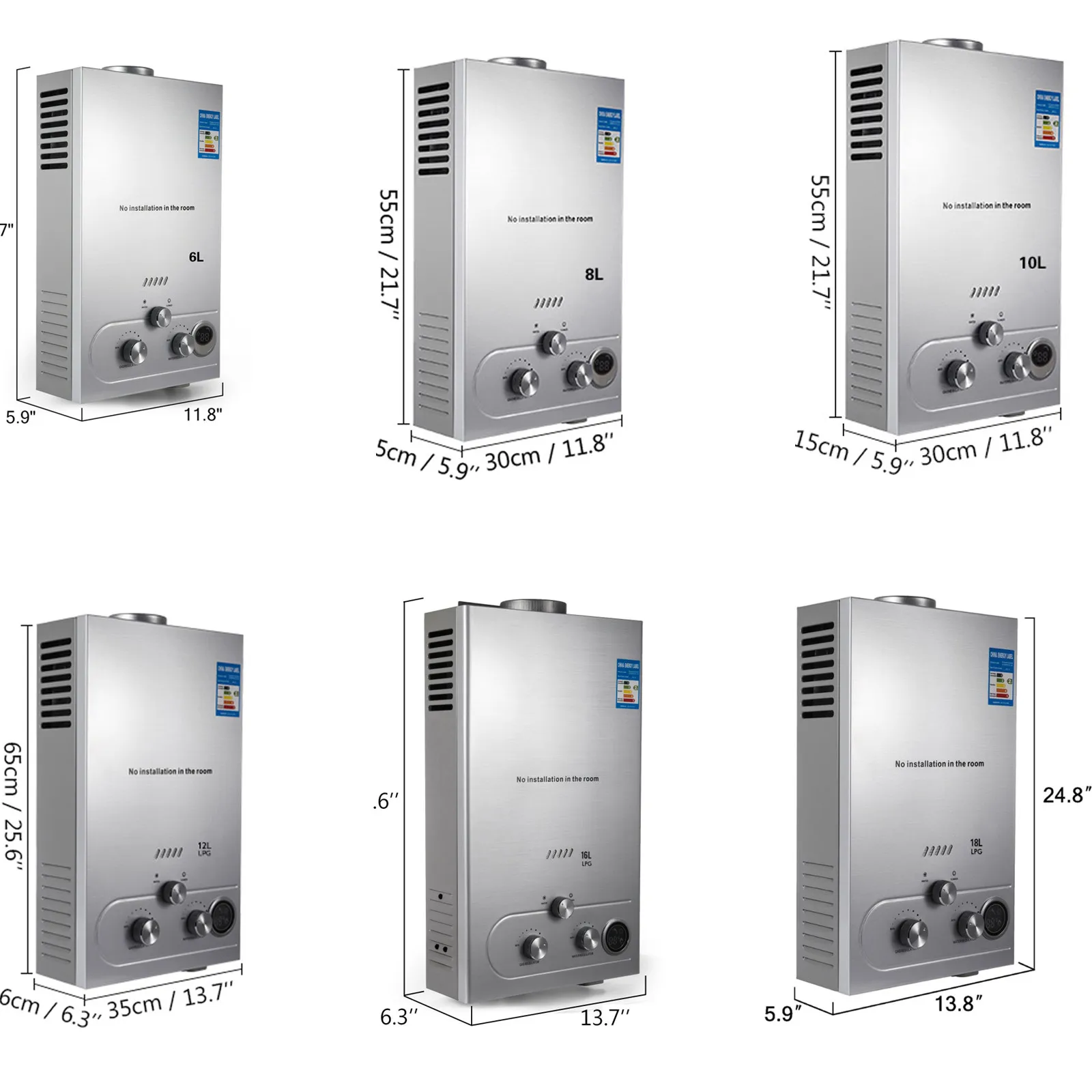 Пропановый безрезервуарный нагреватель горячей воды, газовый 6L-18L 4.8gpm, нержавеющая сталь, пропан по запросу, газ, бытовая техника, Рождество