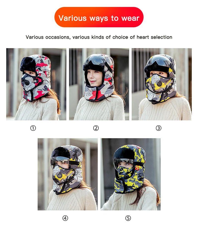 Adjustable регулируемая конструкция пряжки: проста в использовании; Ветрозащитная маска сохраняет лицо и уши в тепле зимой, а также против ветра