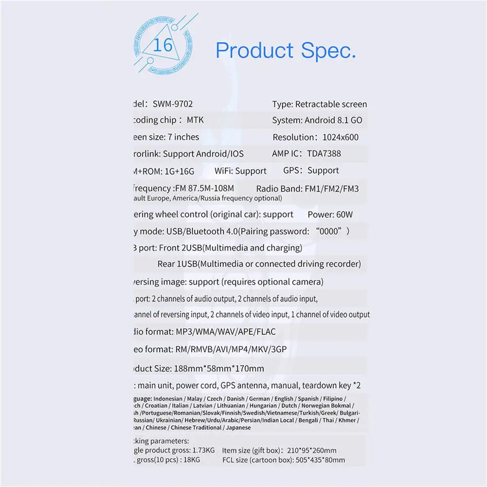 7-дюймовый автомобильный радиоприемник, Android 8,1, GPS-навигация,...