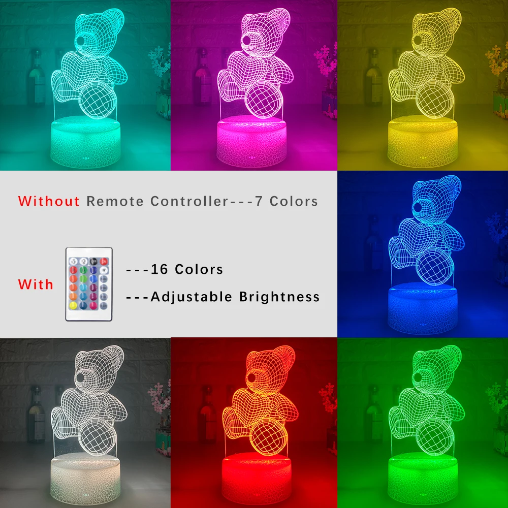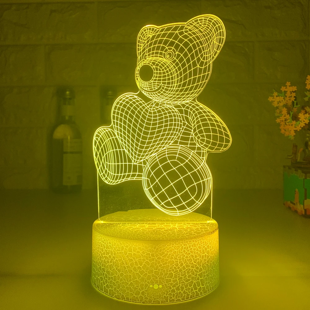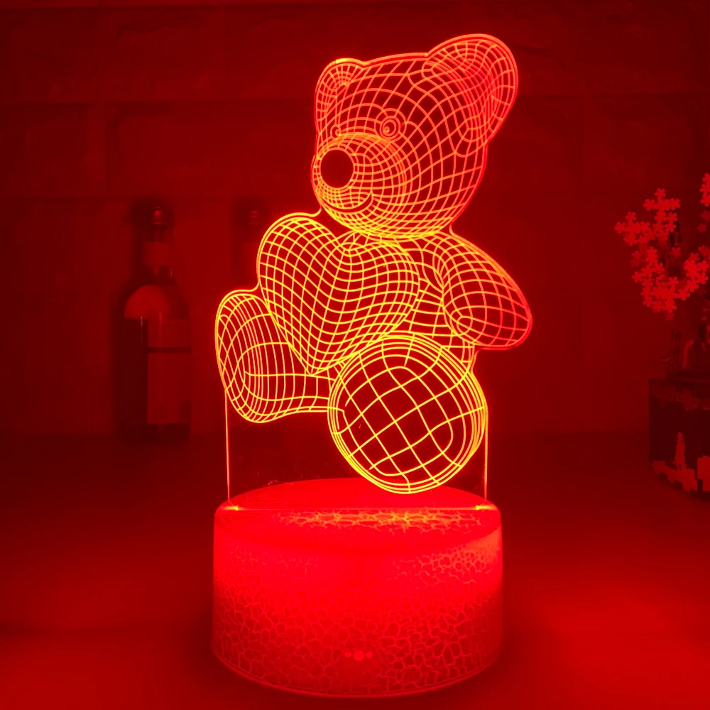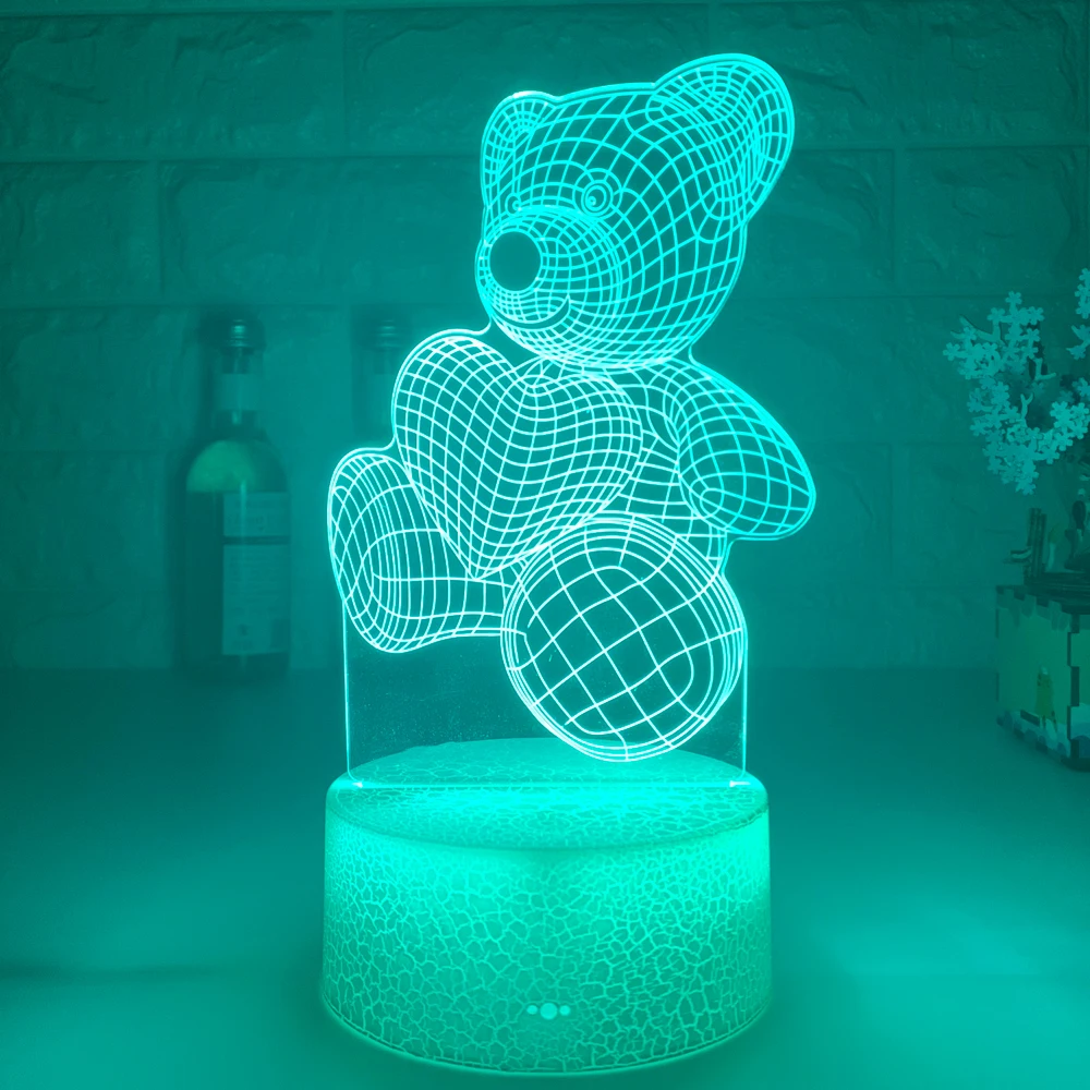 3d иллюзия детский ночник медведь с сердцем светодиодный сенсорный переключатель красочная атмосфера для украшения дома светильник Настольная лампа прикроватный