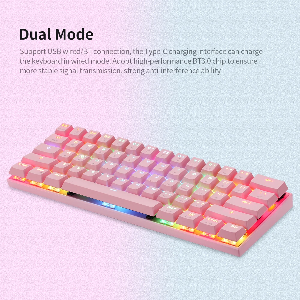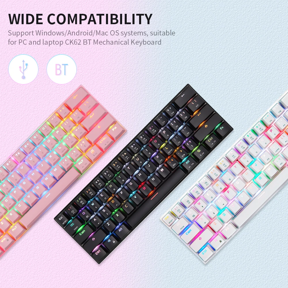 Motospeed CK62 61 клавиша RGB механическая клавиатура USB Проводная BT Двухрежимная игровая клавиатура с переключателями для геймеров Красногосинего цвета