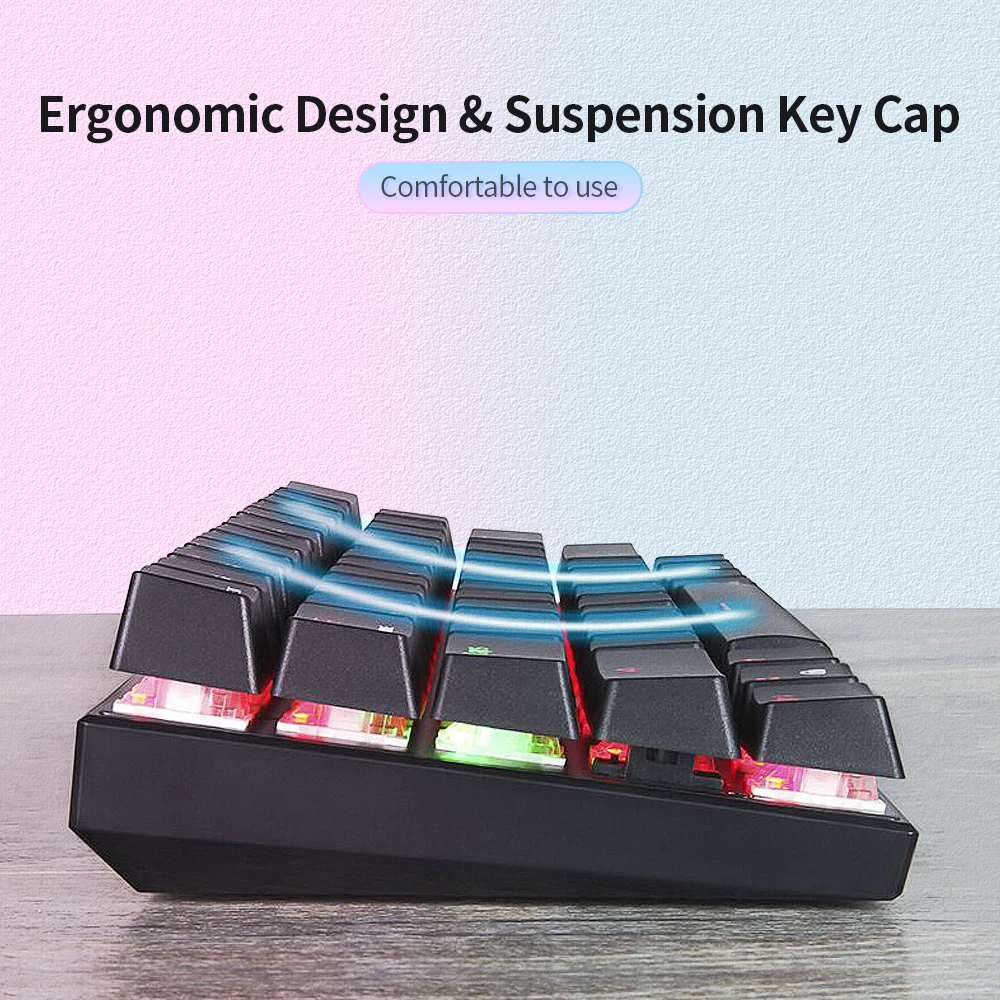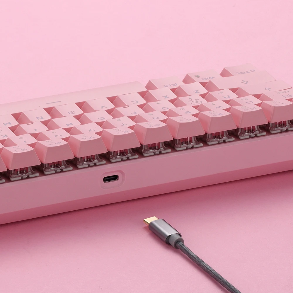 Особенности: Двойной режим, поддержка проводного подключения USB/BT, зарядный интерфейс Type-C может заряжать клавиатуру в проводном режиме. Принять высокопроизводительный чип BT3.0 для обеспечения более стабильной передачи сигнала, 10 м эффективное расстояние передачи, сильная способность анти-помех. Три устройства BT могут сочетаться одновременно, вы можете переключать устройства с помощью FN + E, FN + R, FN + T операций. 61 клавиша, красный переключатель OUTEMU не имеет чувства абзаца, он чувствует светильник при наборе, низкий уровень шума. N-key rollover, клавиатура обеспечивает 19 видов эффектов RGB светильник для вас на выбор. Эргономичный дизайн, колпачок для ключей, удобный в использовании. Встроенный аккумулятор большой емкости 1300 мАч может использоваться непрерывно в течение 10 часов, легкая зарядка, 480 часов в режиме ожидания, не нужно беспокоиться о нехватке энергии. Широкая совместимость, Поддержка систем Windows XP/Win7/Win8/Linux/Android/Mac OS, подходит для ПК и ноутбуков. Спецификация: Бренд: MOTOSPEED Модель: CK62 Цвет: черный/белый/розовый (Опционально) Переключатель: OUTEMU синий переключатель/OUTEMU красный переключатель (Опционально) Долговечность: 50 миллионов раз Количество клавиш: 61 Режим подключения: USB проводной/BT Версия BT: V3.0 Емкость аккумулятора: 3,7 В/1300 мАч Рабочее напряжение/ток: 5 В/300 мА (проводное), 3,7 В/200 мА (BT) Размер изделия: 29*10*4 см/11,42*3,94*1,57 дюйма (Д * Ш * В) Вес изделия: прибл. 465 г/16,4 унций Размер посылка: 33*13*7 см/12,99*5,12*2,76 дюйма (Д * Ш * В) Вес посылки: 630 г/22,22 унций Упаковочный лист: 1 * Клавиатура 1 * USB кабель 1 * Руководство пользователя