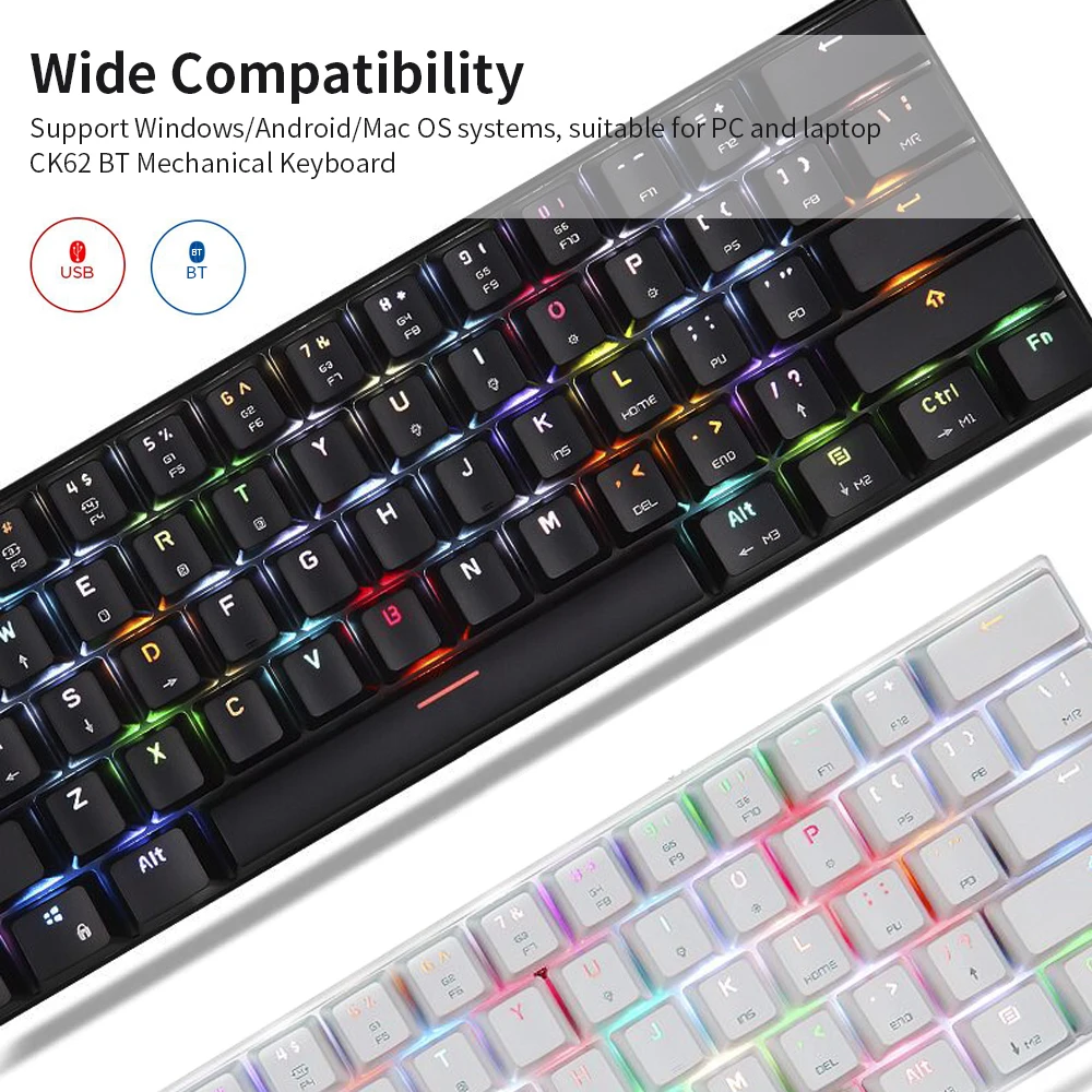 Motospeed CK62 61 клавиша RGB механическая клавиатура USB Проводная BT Двухрежимная игровая клавиатура с переключателями для геймеров Красного/синего цвета