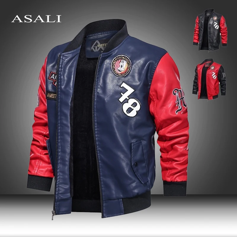 Мужская кожаная куртка на молнии, осенне-зимняя куртка из искусственной кожи, Повседневная мотоциклетная кожаная куртка, Мужская теплая облегающая верхняя одежда для отдыха