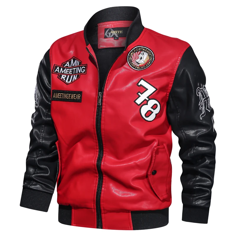 Мужская ветровка из искусственной кожи, мотоциклетная куртка из иск...