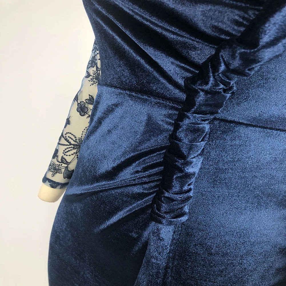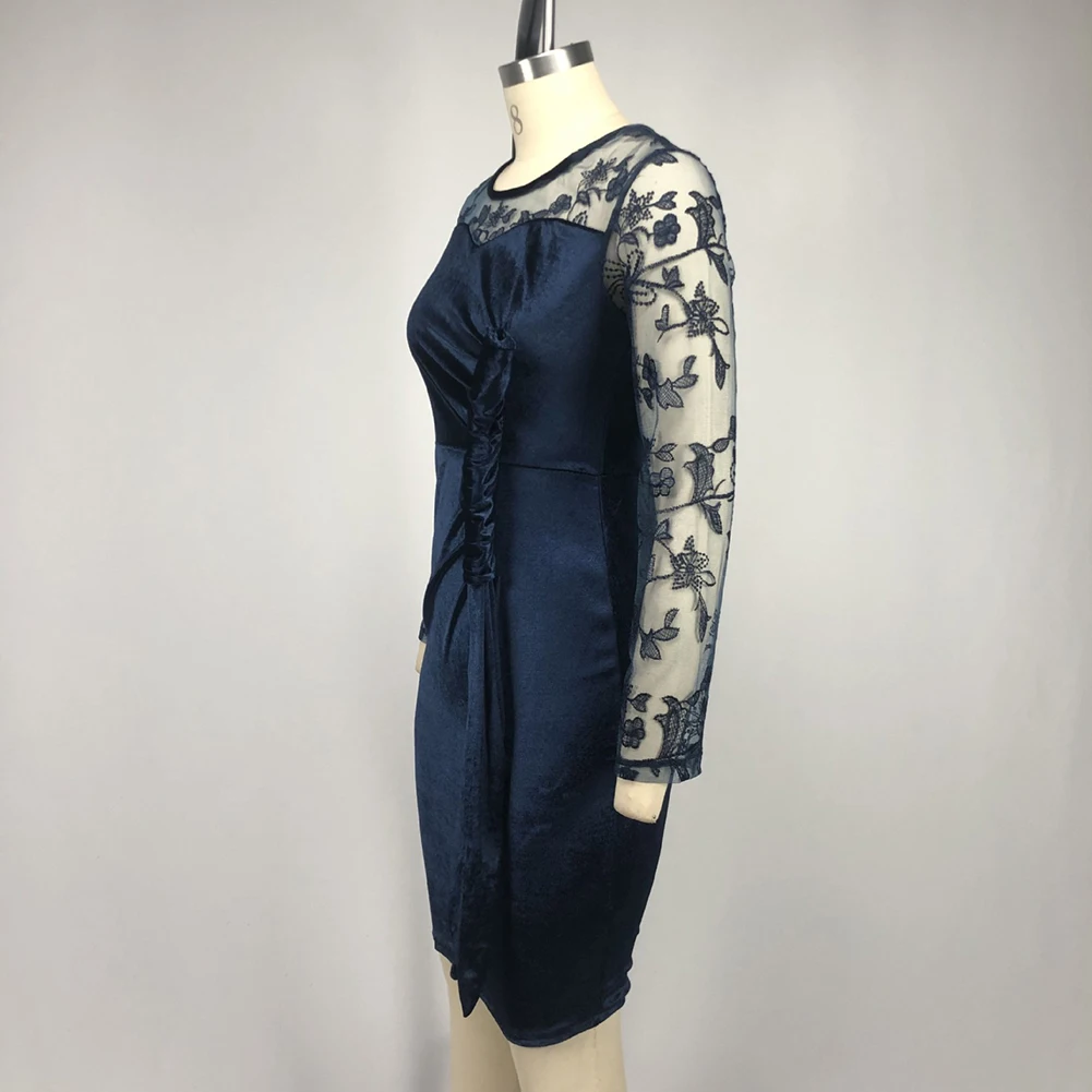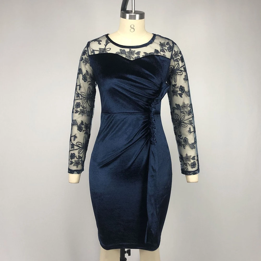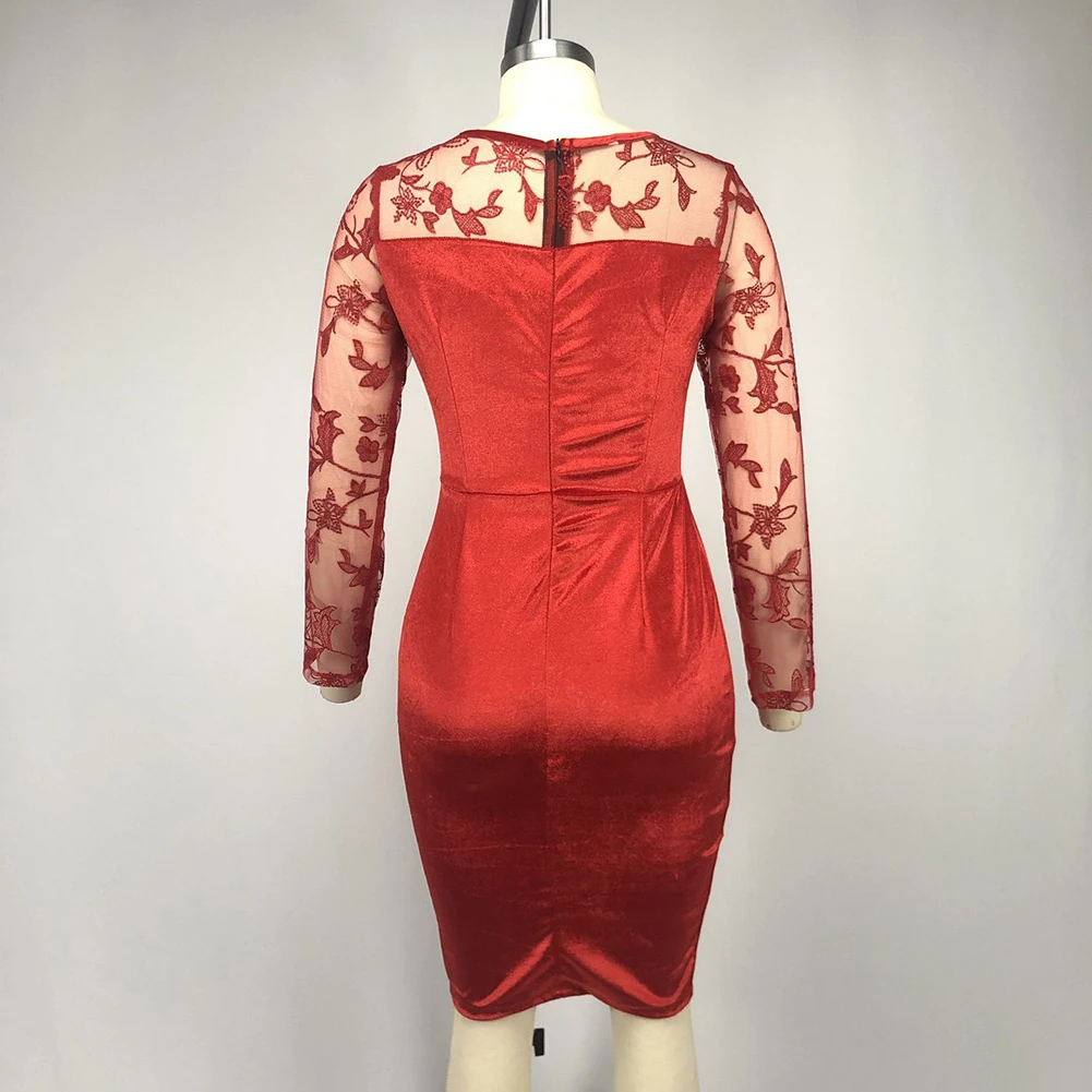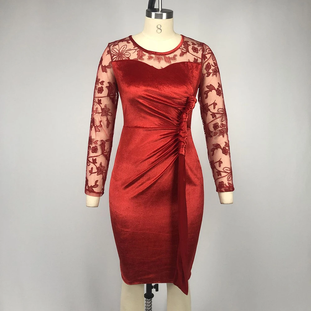 Женское Прозрачное платье с длинным рукавом, Кружевное облегающее платье составного кроя с рюшами и вышивкой, 3 цвета, Осень-зима