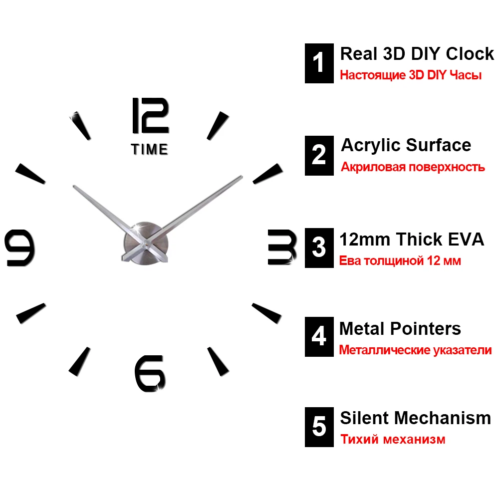 Большие настенные мини-часы сделай сам в современном дизайне, бесшумные цифровые 3D настенные большие часы, украшения для гостиной, дома, офиса