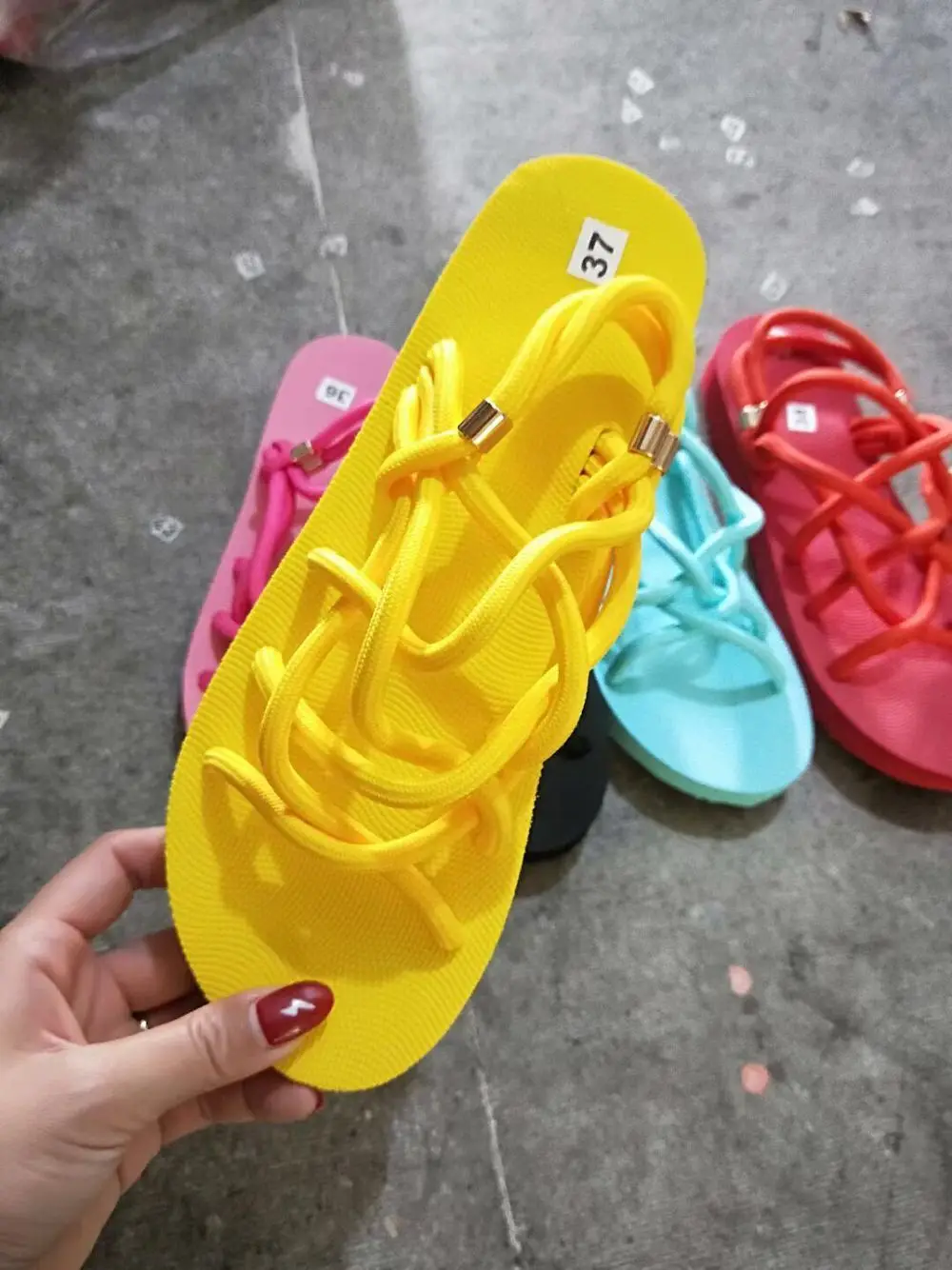 Женские сандалии больших размеров, лето 2021, женская обувь на плоской подошве, набор из пеньковой веревки, пляжные сандалии, уличные универсальные повседневные шлепанцы