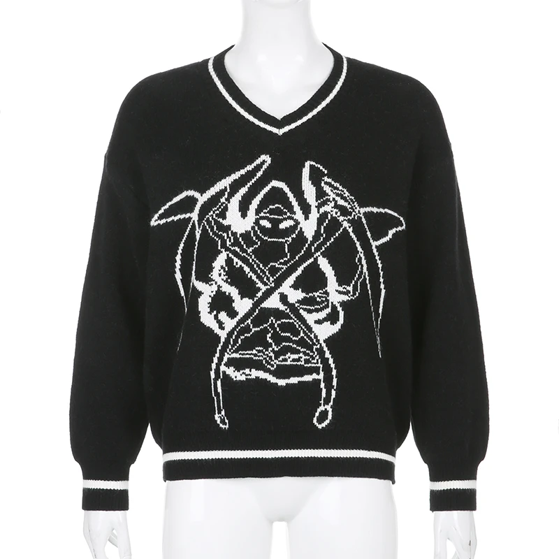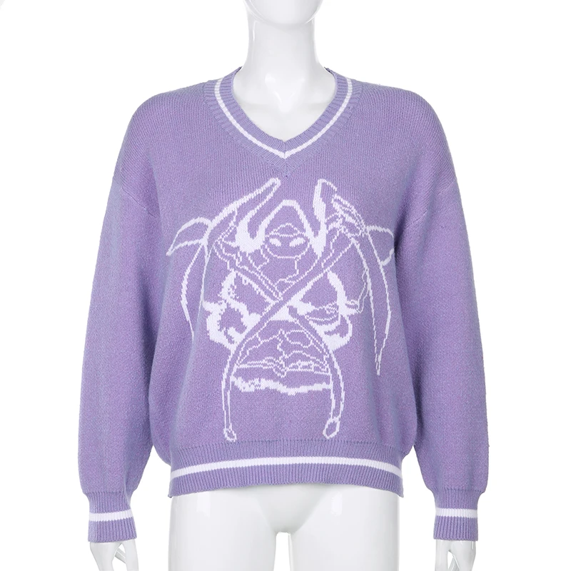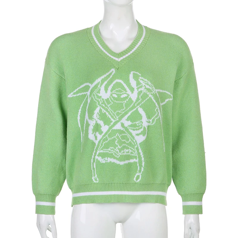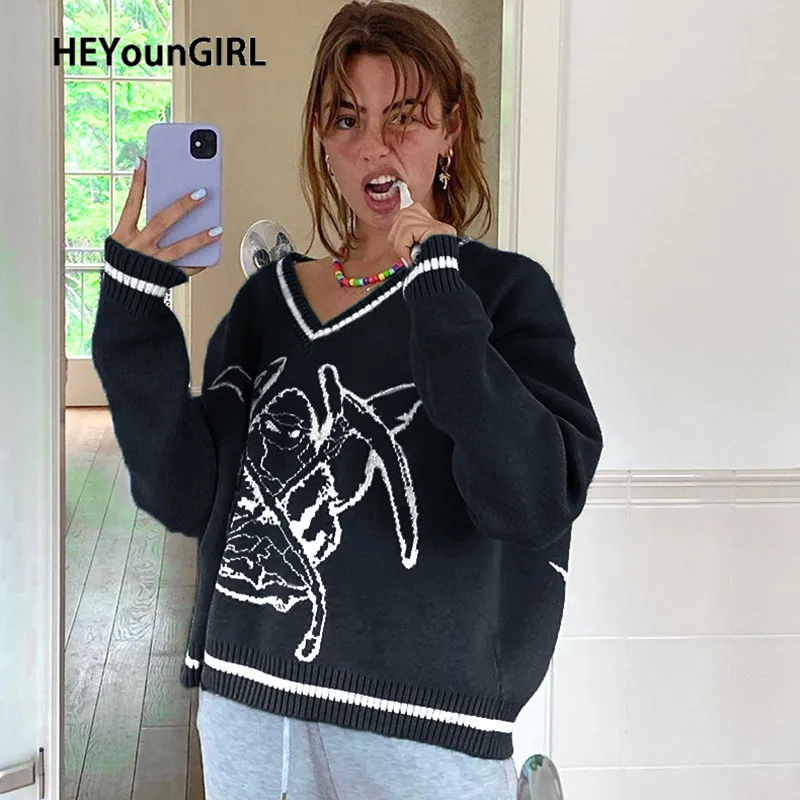Вязаный свитер HEYounGIRL в стиле преппи, Женский Повседневный осенний джемпер с V-образным вырезом, Женский пуловер с принтом, трикотажная одежда, 2021