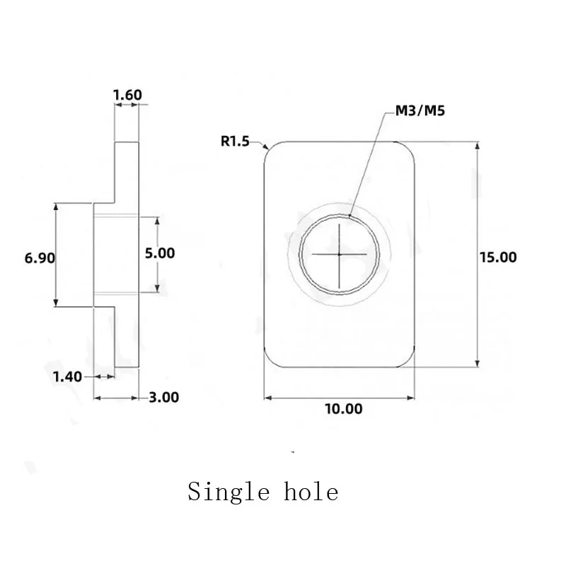 Гайка для 3D-принтера M3 M4 M5 T, алюминиевый профиль, оцинкованная, двойное отверстие, одно отверстие, 10 шт.