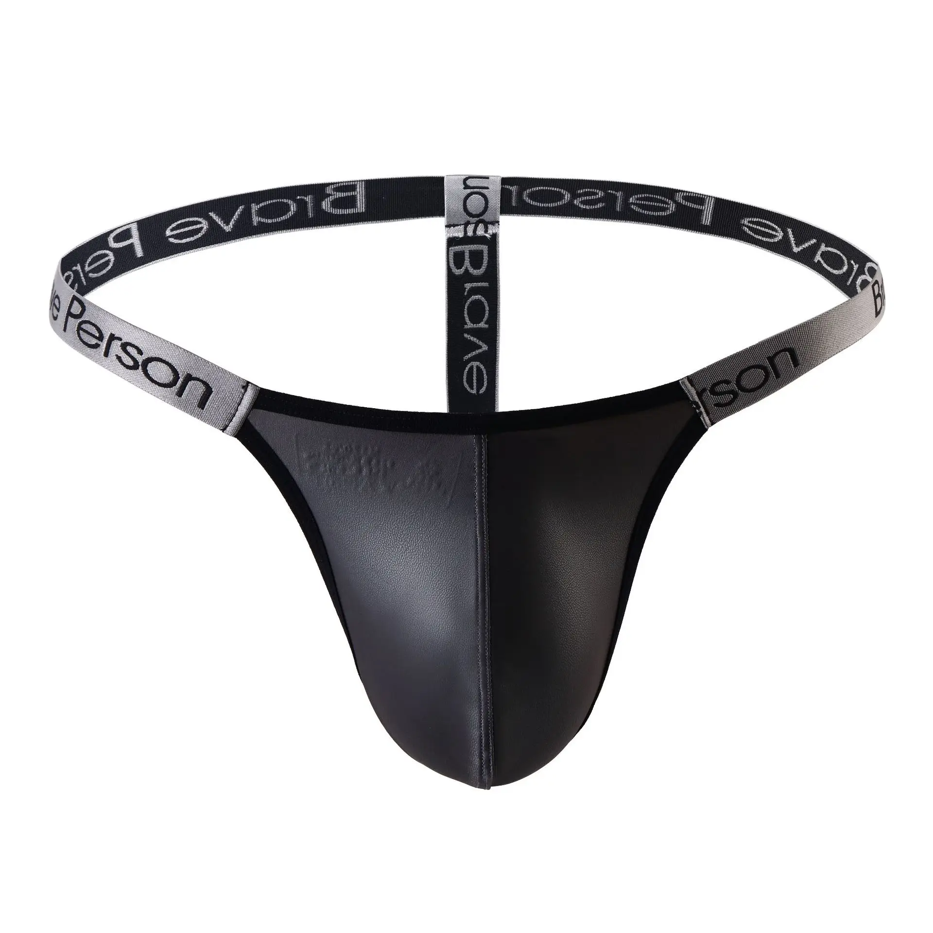 3 шт.лот, Брендовые мужские Трусы-стринги из искусственной кожи для плавания, мужские трусы-танга с надписью Brave Person, сексуальные трусы-бикини, нижнее белье