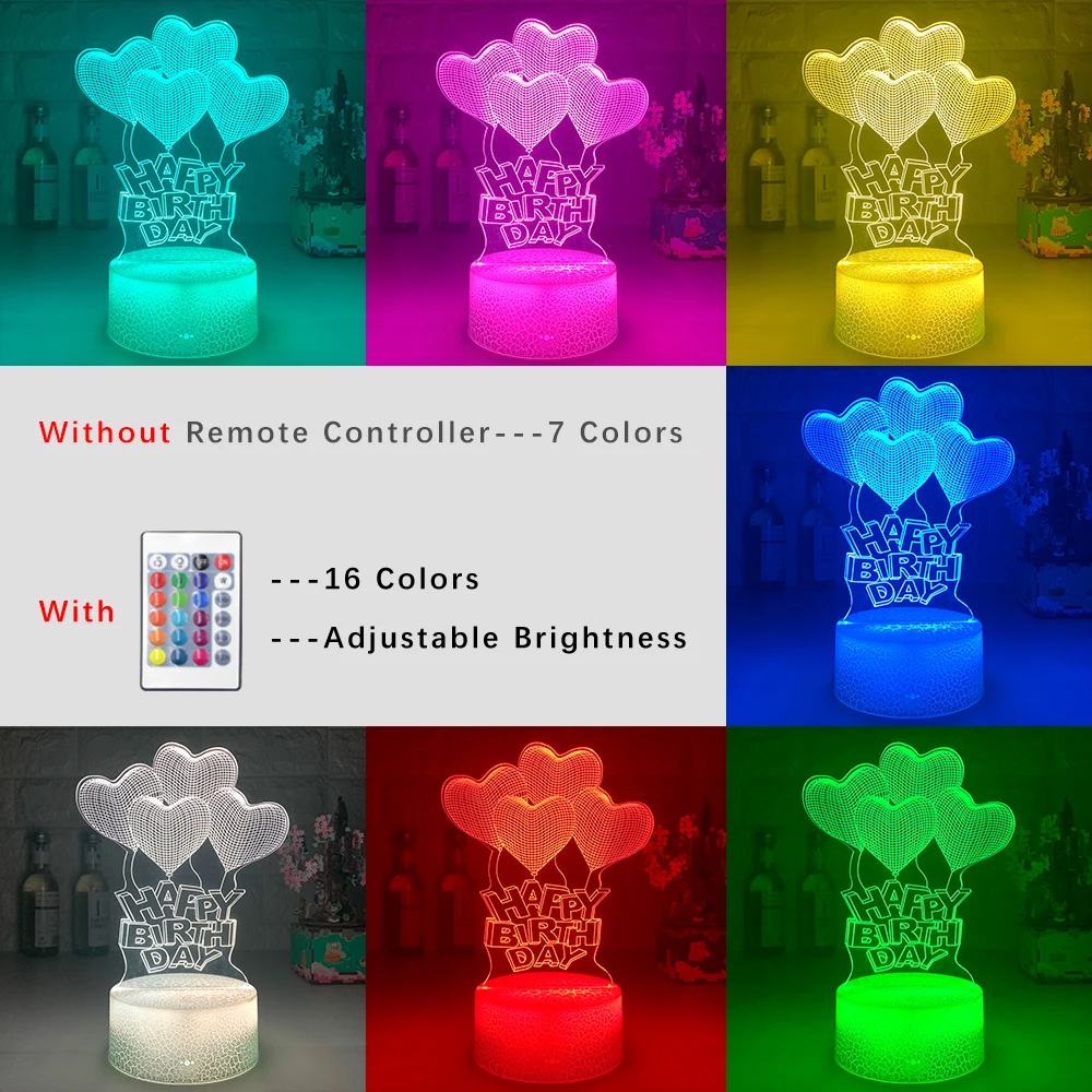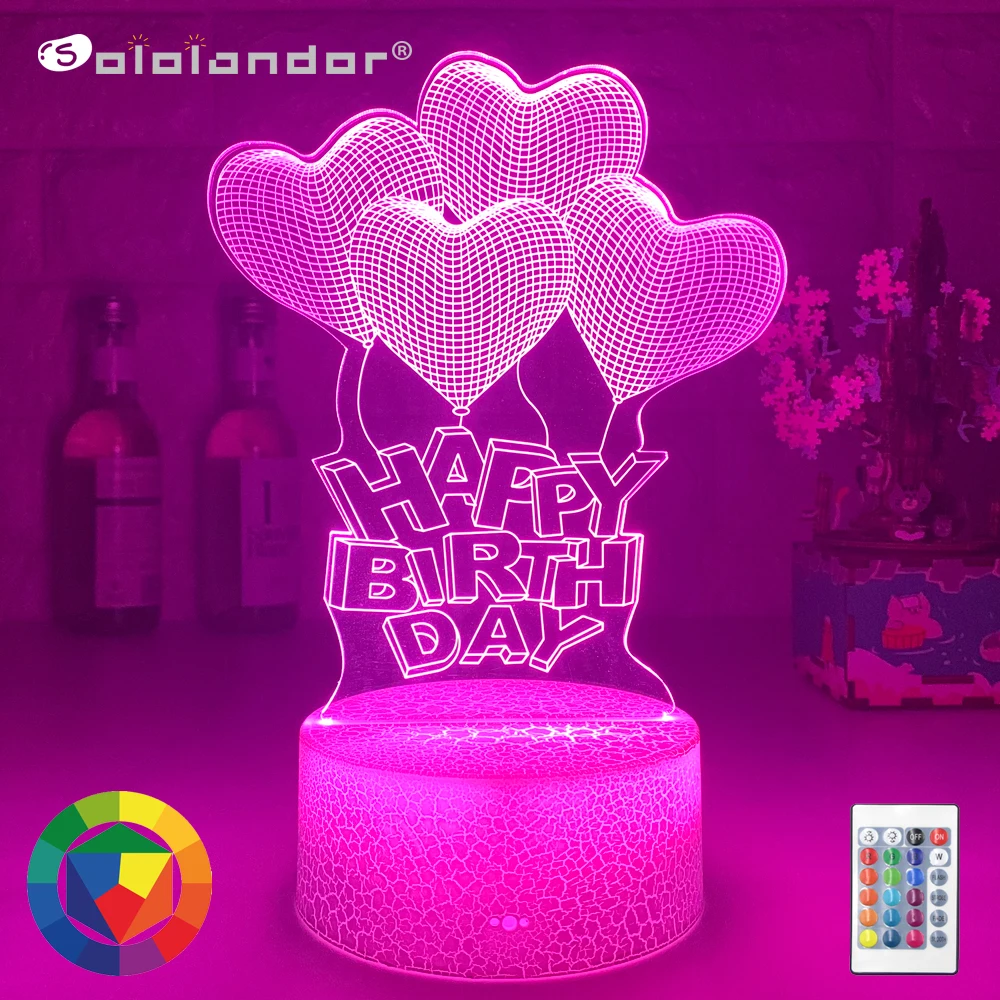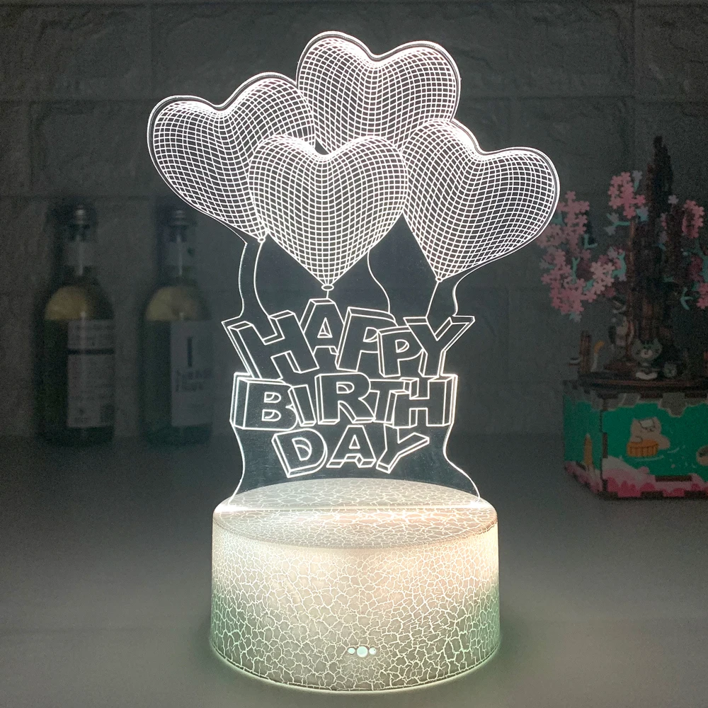 С днем рождения 3D лампа креативный 7 цветов ночсветильник s Новинка Иллюзия ночник Иллюзия настольная лампа для дома декоративный светильник
