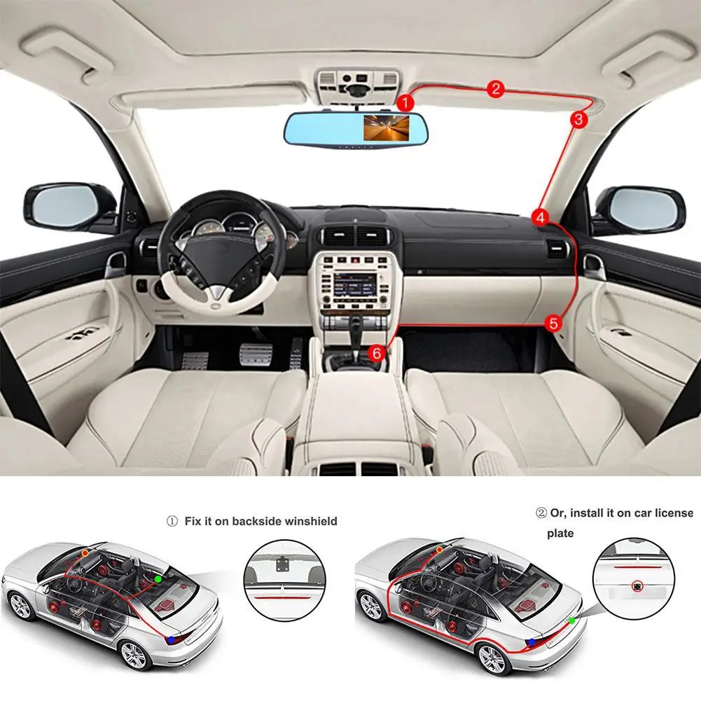 Автомобильный видеорегистратор, зеркало заднего вида с двумя объективами, видеокамера ночного видения, видеорегистратор HD 1080P 4,3 дюйма, автомобильные аксессуары