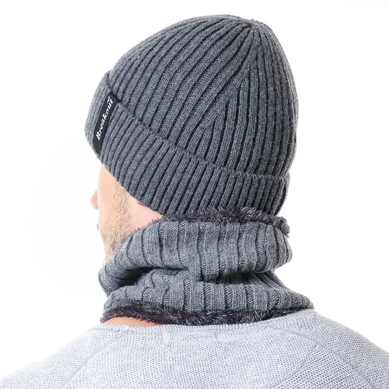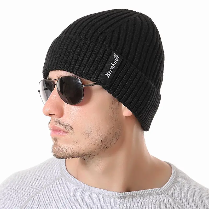 классическая шапка мужская зимняя повседневное шапка мужская теплая зимняя вязаная шапка модные Ярлык прорыва шапки