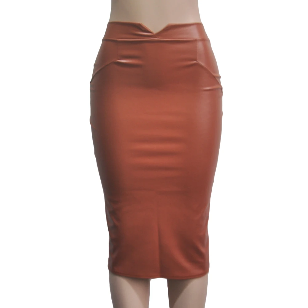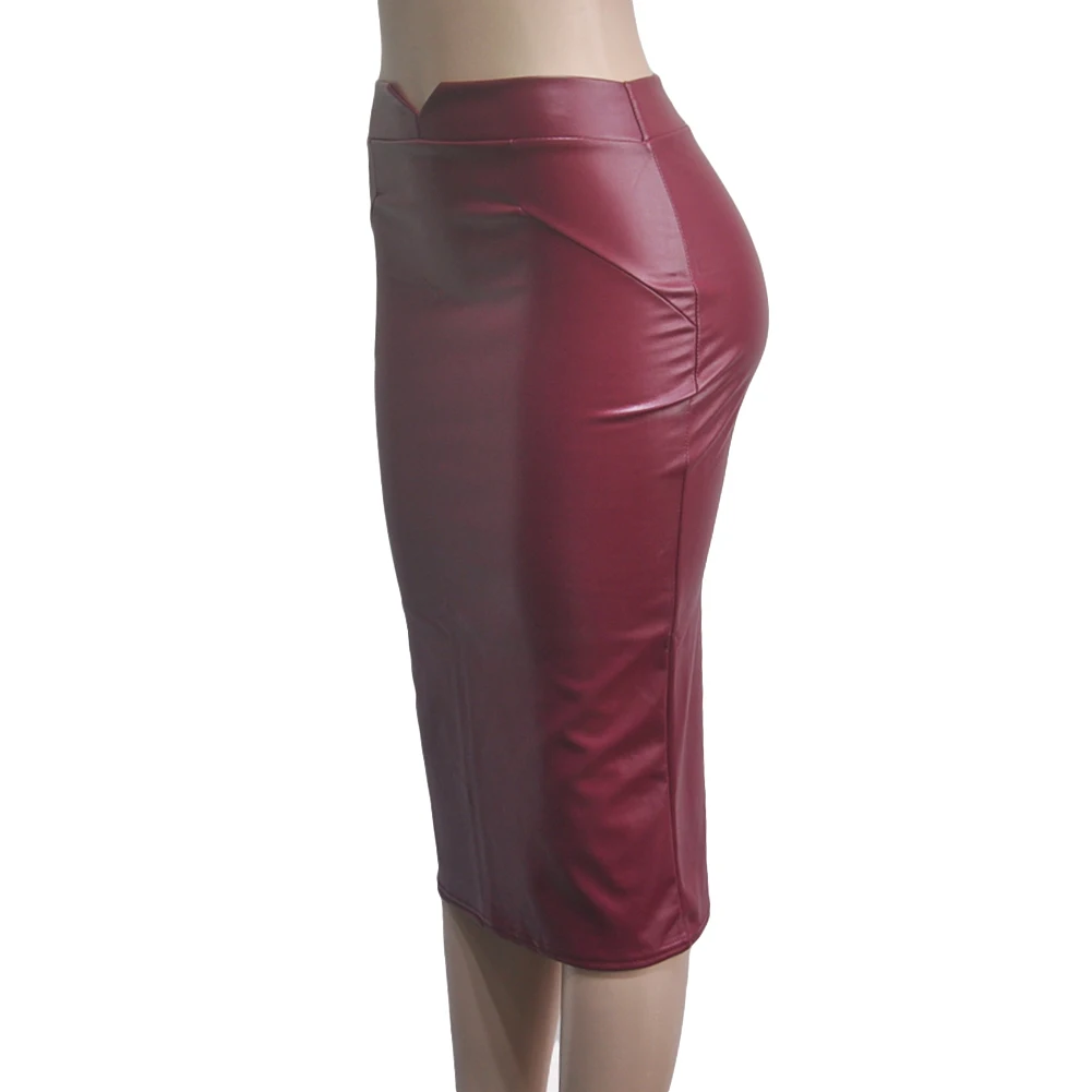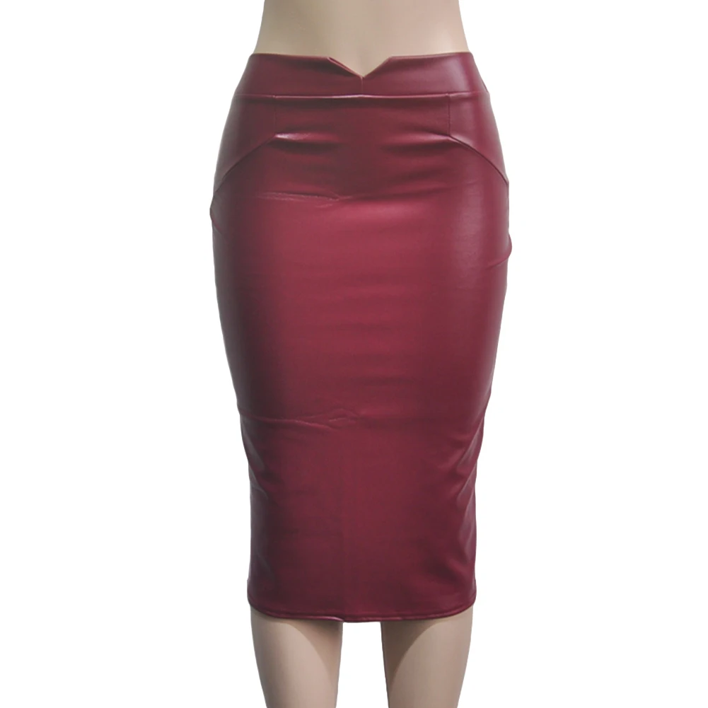 Модная женская однотонная облегающая юбка из искусственной кожи с завышенной талией, обтягивающая юбка длиной до размера плюс