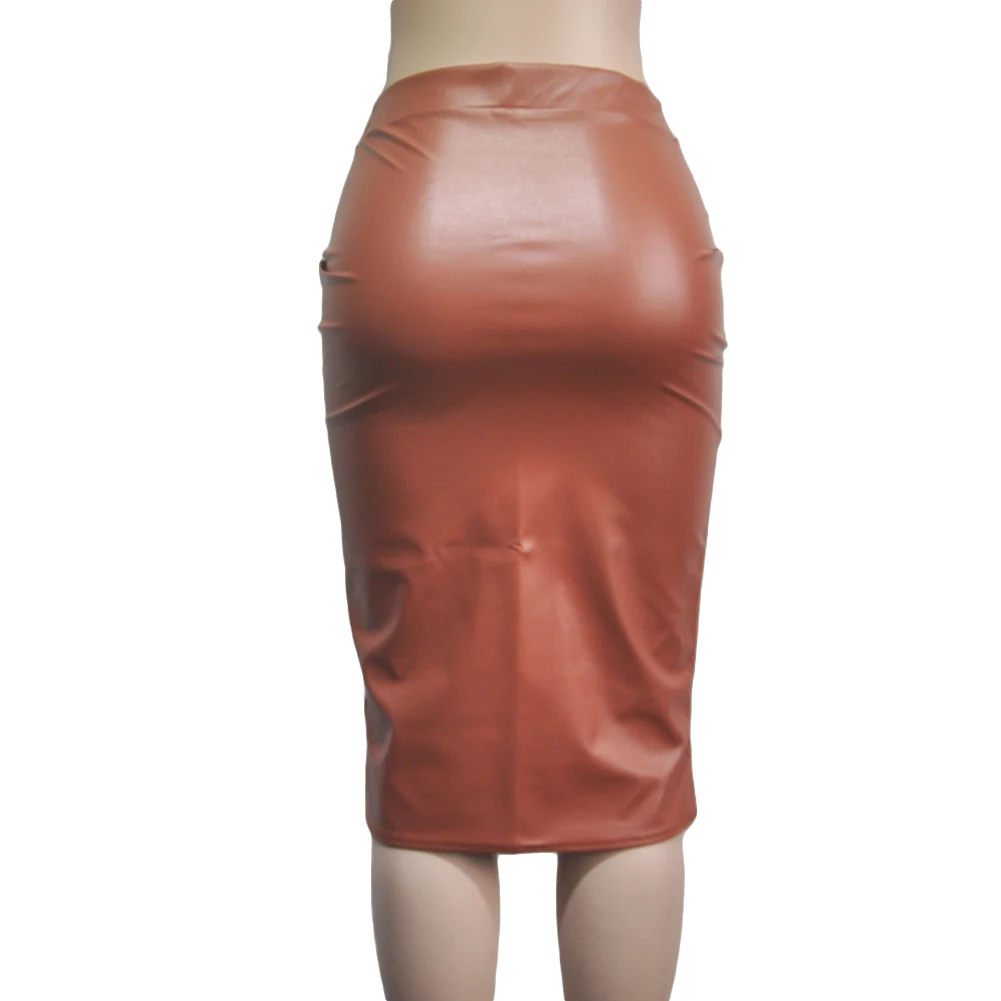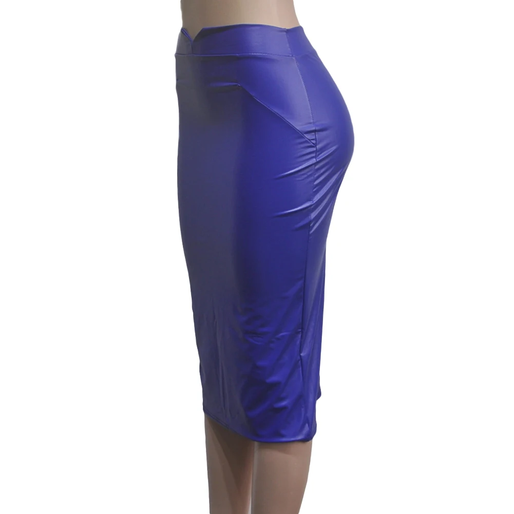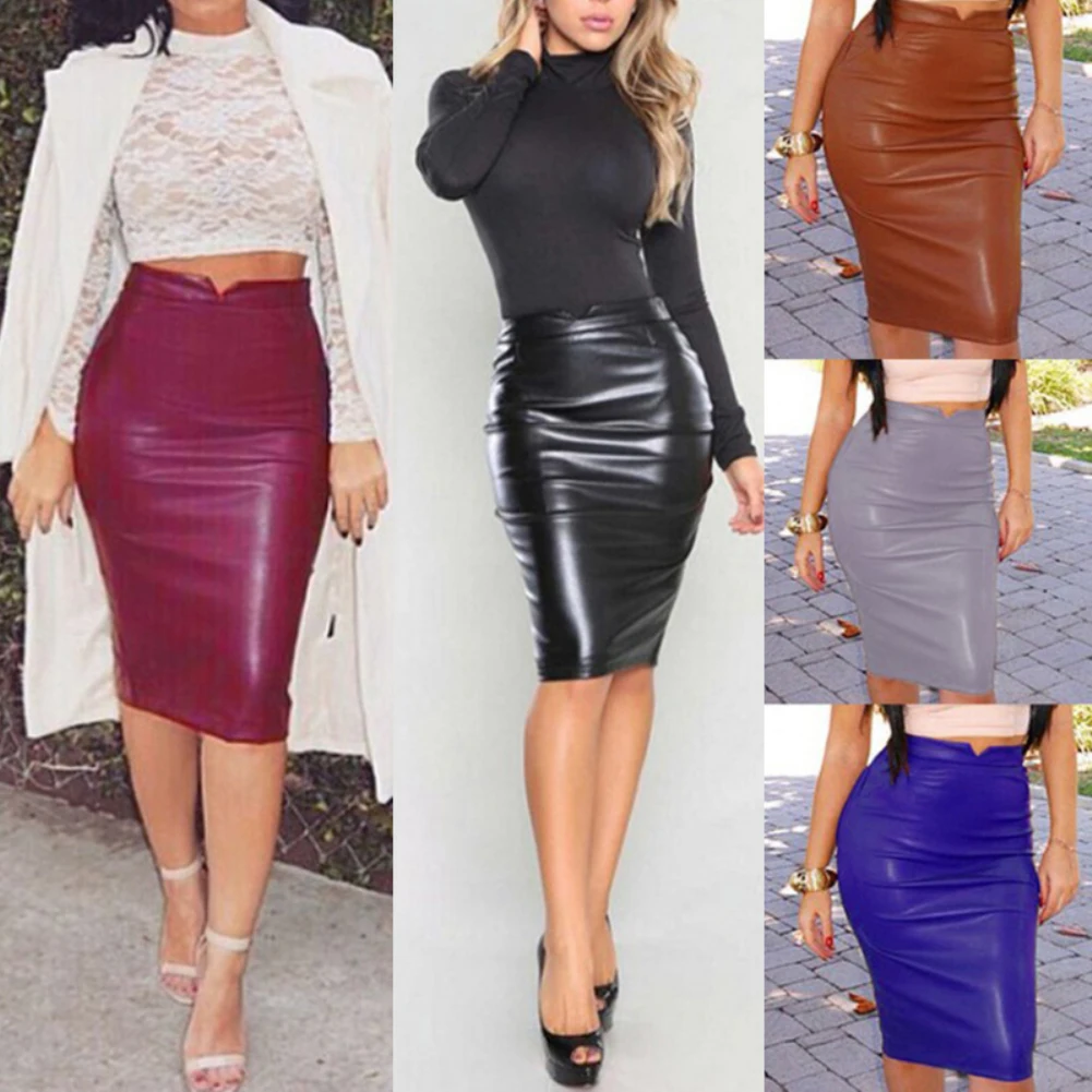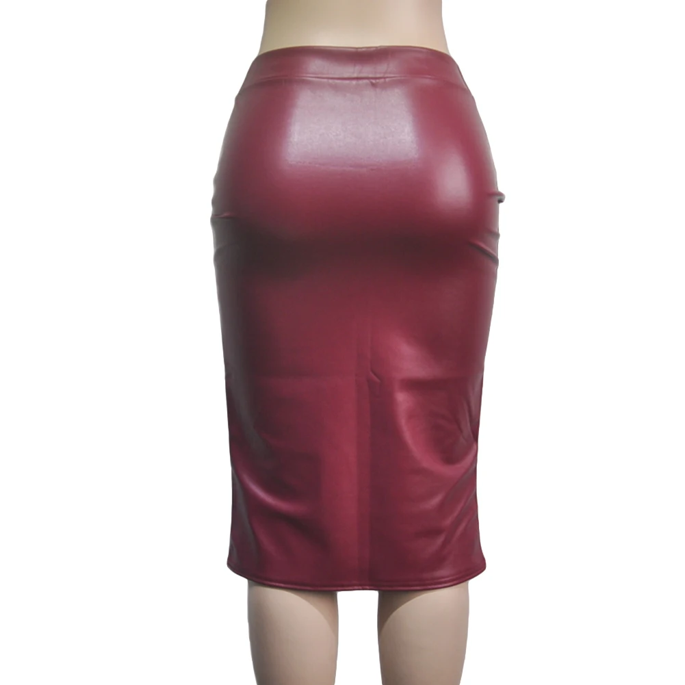 Модная женская однотонная облегающая юбка из искусственной кожи с завышенной талией, обтягивающая юбка длиной до размера плюс