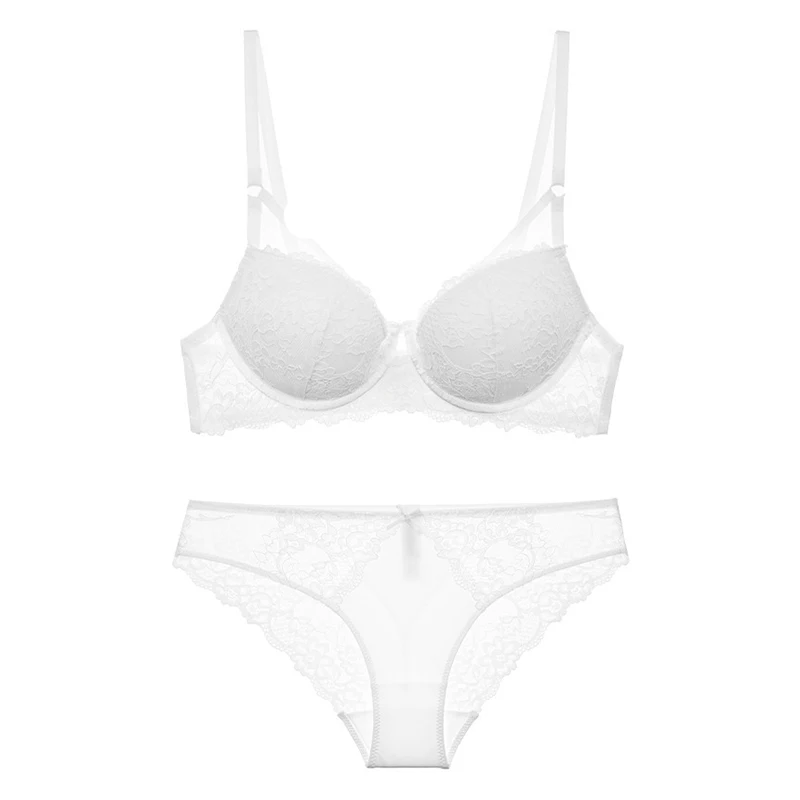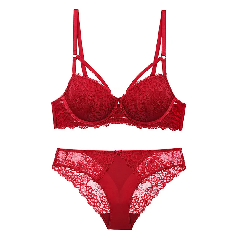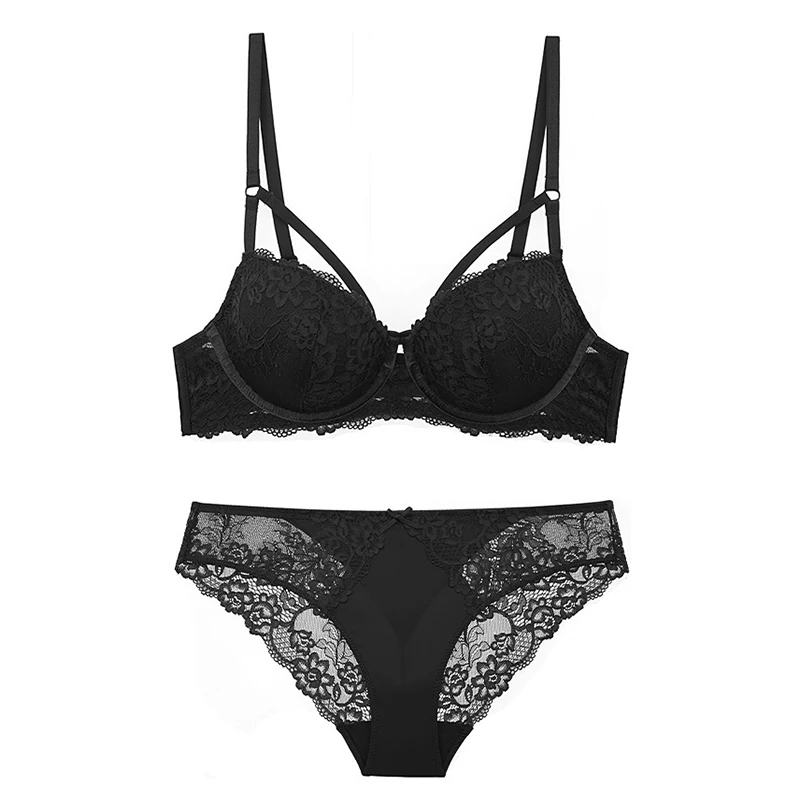 Комплект женского кружевного нижнего белья из бюстгальтера пуш-ап и трусиков