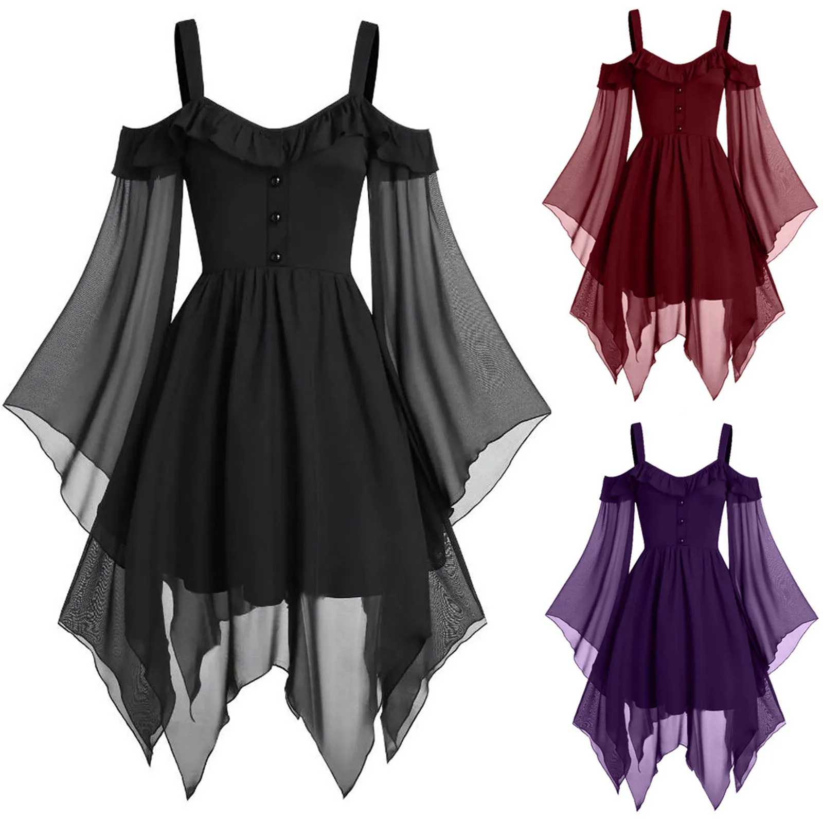Размера плюс женская однотонная на шнуровке, пикантная Готическая блузки с рукавом-бабочкой с V-образным вырезом и длинным рукавом, #35