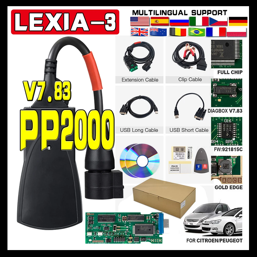 Диагностический сканер Lexia 3 PP2000, для Citroen Peugeot, полный чип Diagbox V7.83 с прошивкой 921815C, V48V25, OBDII