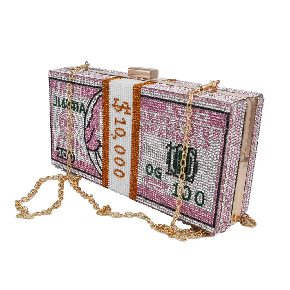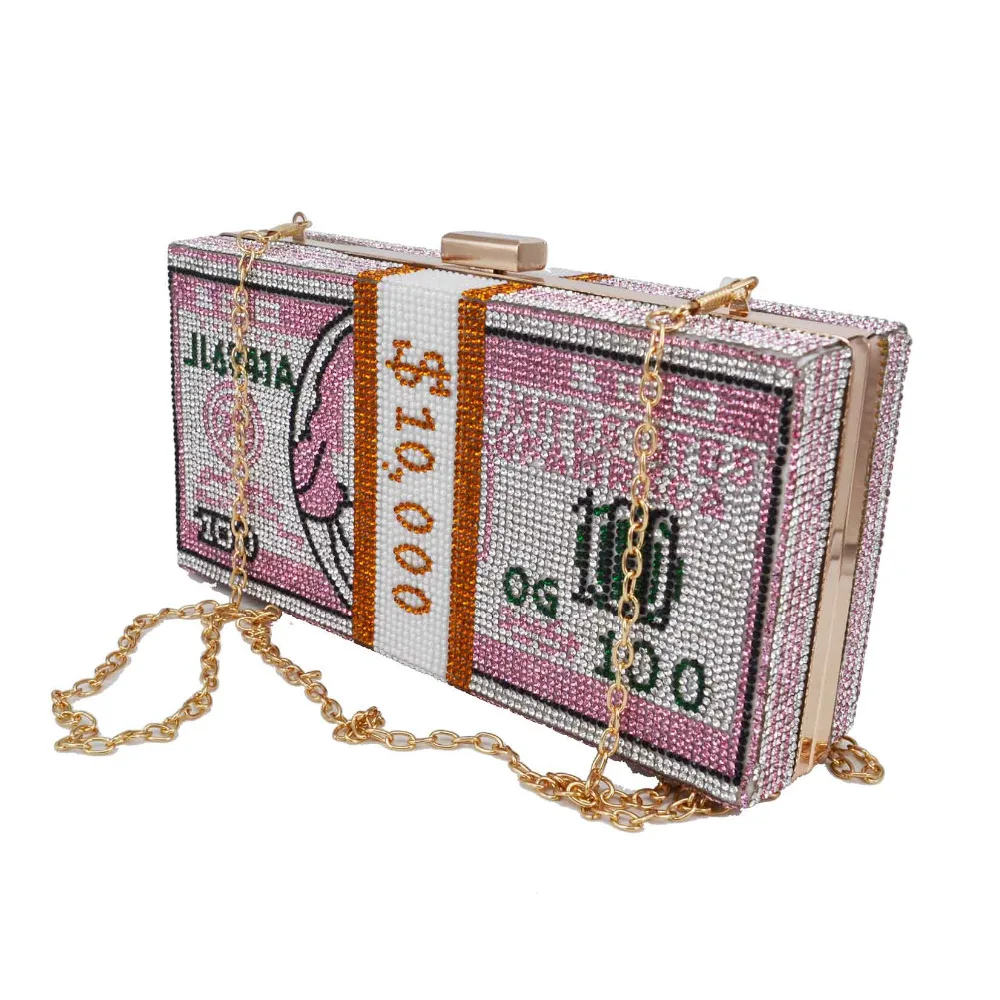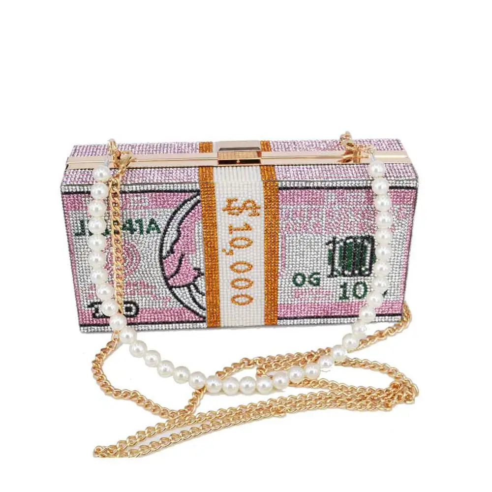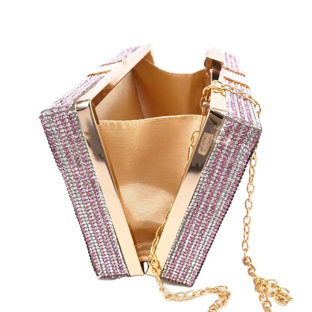 Клатч с кристаллами для женщин, дизайнерская вечерняя сумочка розового цвета на цепочке через плечо для женщин