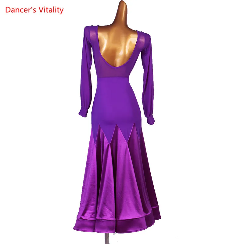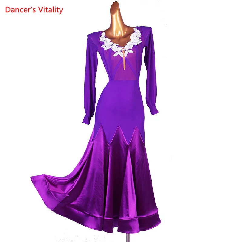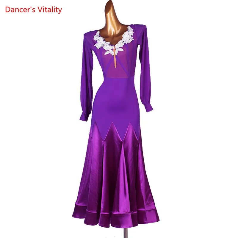 Бальное платье для танцев с длинными рукавами юбка большого размера, отделанное изготовленный на заказ Вальс танцевальная одежда для взрослых и детей Одежда для выступлений