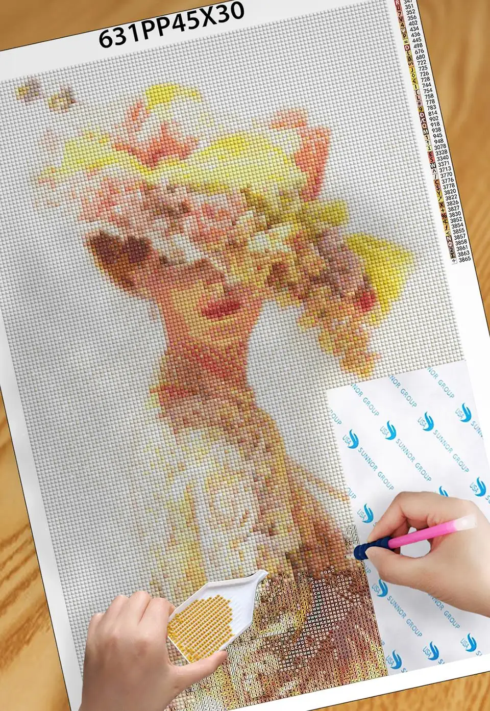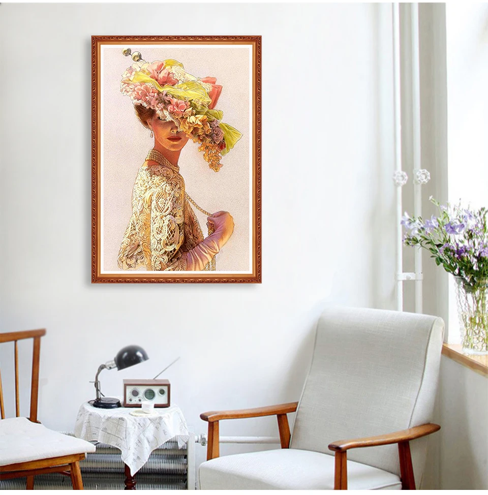 Алмазная живопись, Портрет женщины, шляпа, алмазная вышивка, красота, алмазная живопись, вышивка крестиком стразы, мозаичное украшение