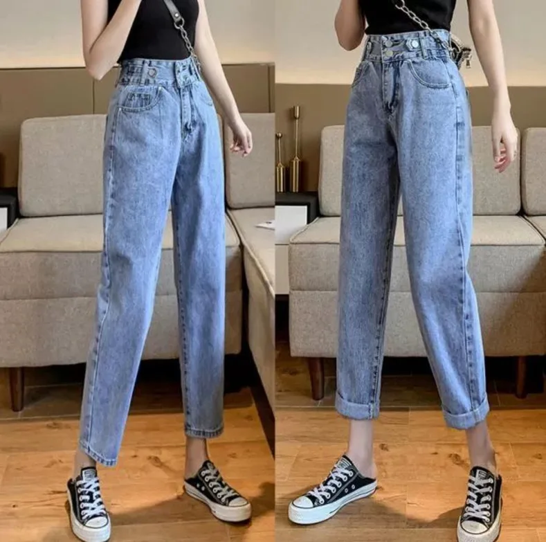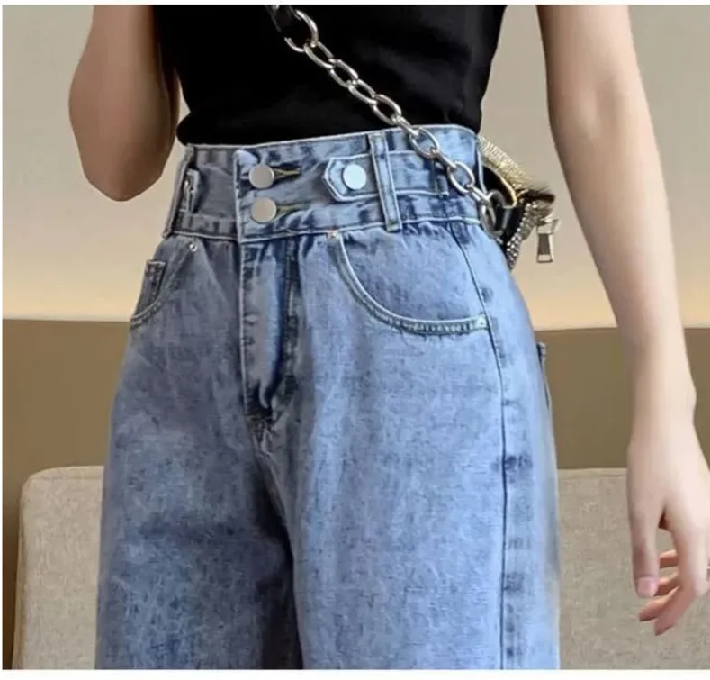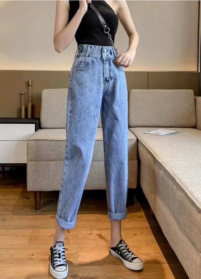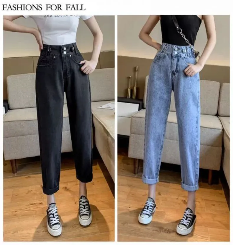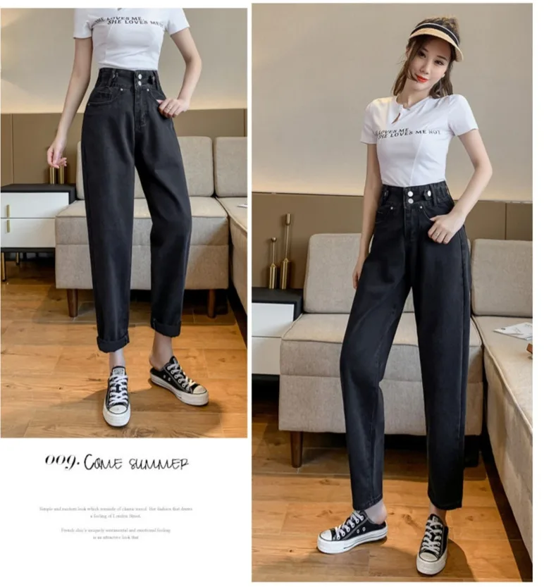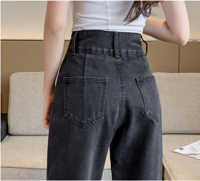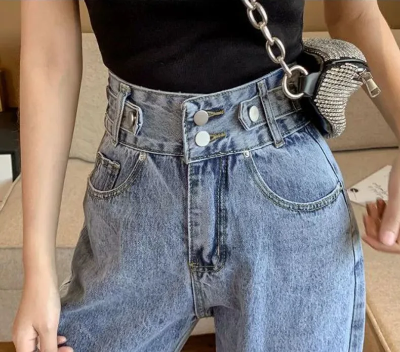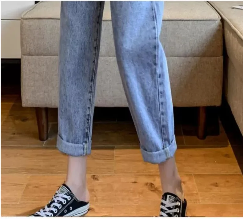 Женские джинсы с высокой талией, длинные прямые свободные шаровары, облегающие, синие, мягкие, джинсовые брюки-карандаш, осень 2020