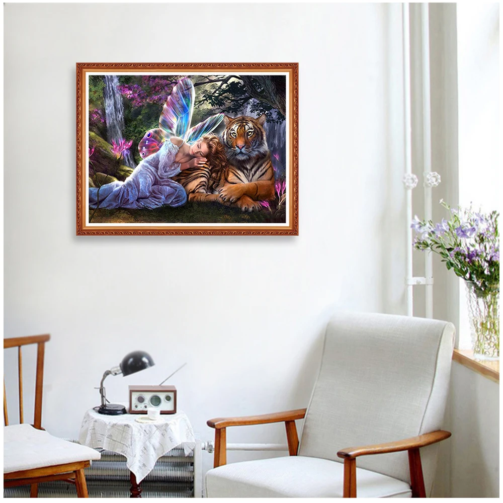 5D DIY алмазная живопись, животное, девушка и тигр, полная вышивка, распродажа, стразы картина, Алмазная мозаика, домашний декор