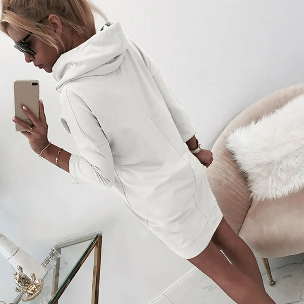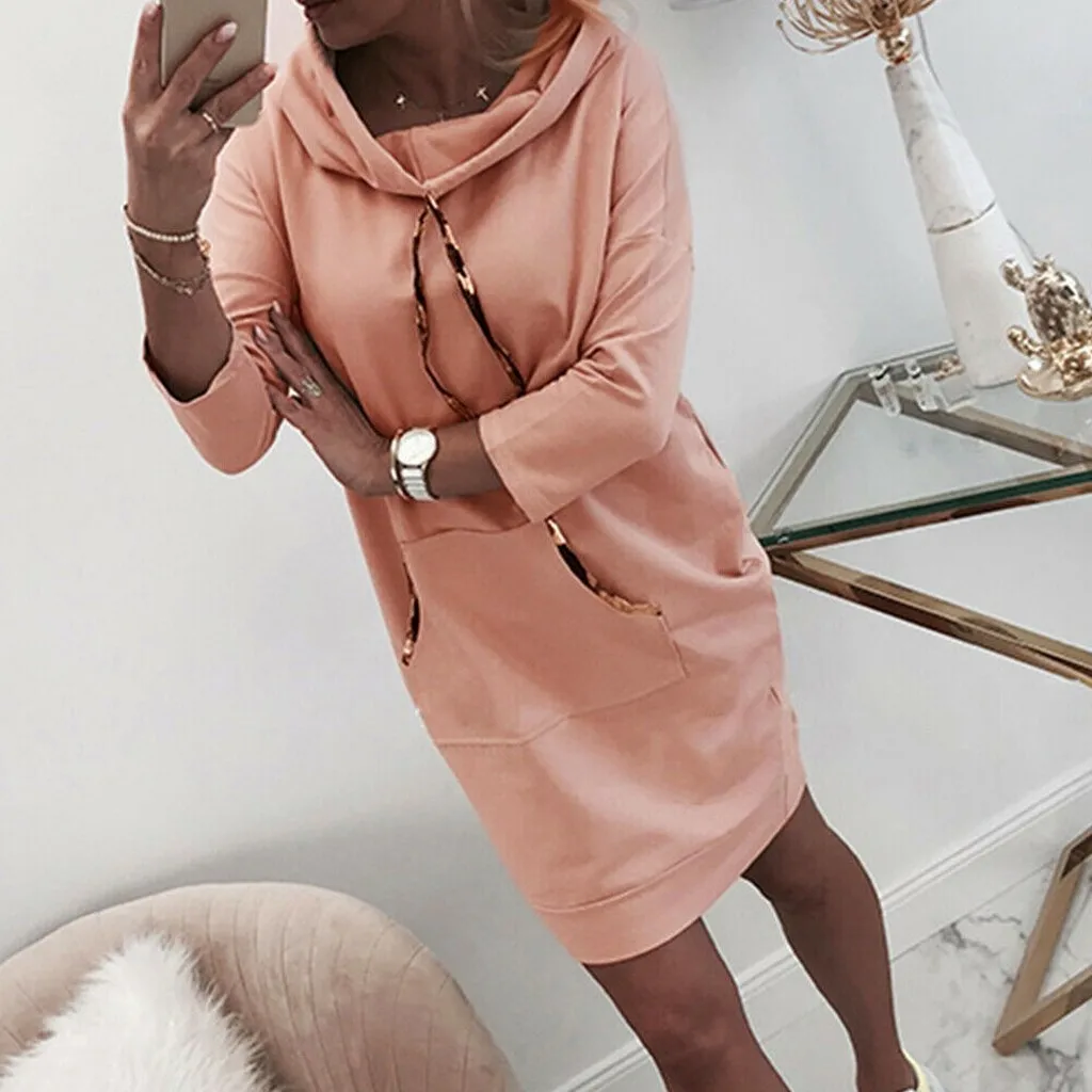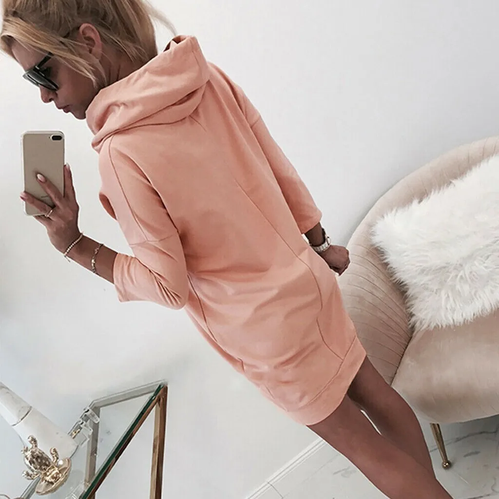 Повседневное весенне-осеннее длинное платье-пуловер, Женский однотонный джемпер с длинным рукавом, пуловер, свитшот, Платье оверсайз с капюшоном, топы # F