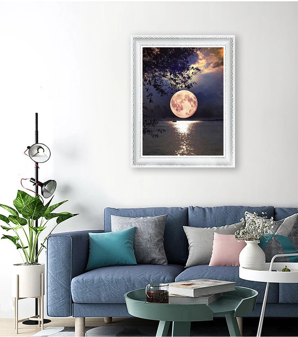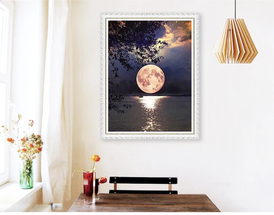 Алмазная живопись 5D с квадратными стразами, пейзаж, вышивка крестиком, луна, картина сделай сам, Декор для дома, стразы