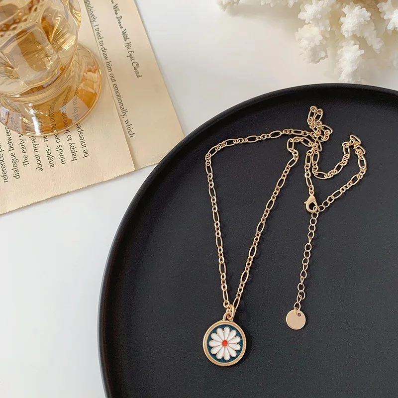 Ожерелье с кулоном в виде цветка хризантемы, Сетчатое ожерелье с маслом, Женская цепочка для ключицы, ожерелья для женщин, кулон для монет
