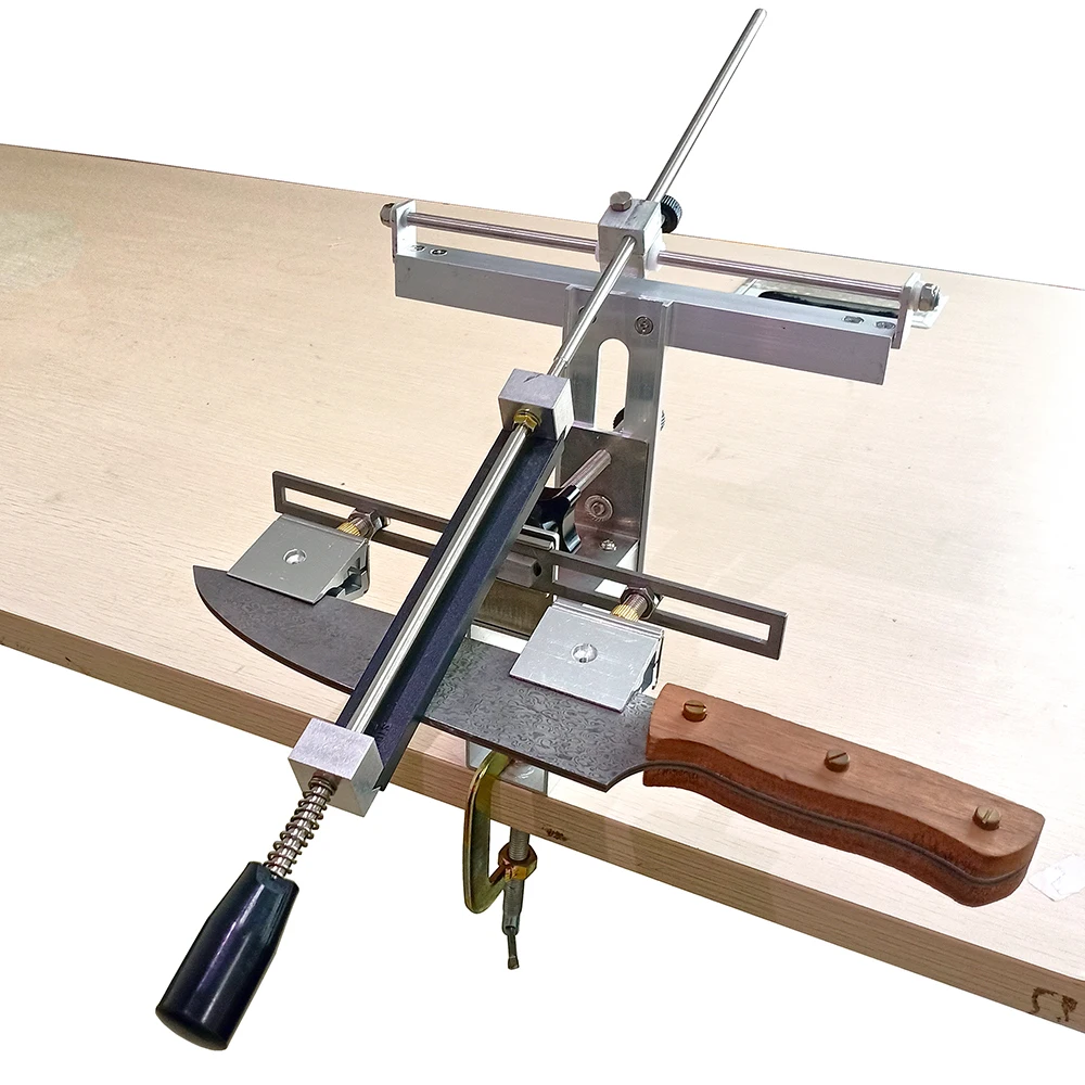 Точилка для ножей Sy-011-самая успешная точилка для ножей китайского производства. Точилка признает низкую цену, хорошее качество материалов, продуманный дизайн без заимствования, для которого традиционно известны китайские производители. Точилка имеет конструкцию с регулируемым углом заточки и поворотным механизмом, а также универсальный каменный держатель (включая формат Edge Pro). Благодаря шарнирному блоку точилку легче освоить, чем Точилки с этапом.