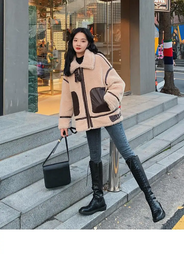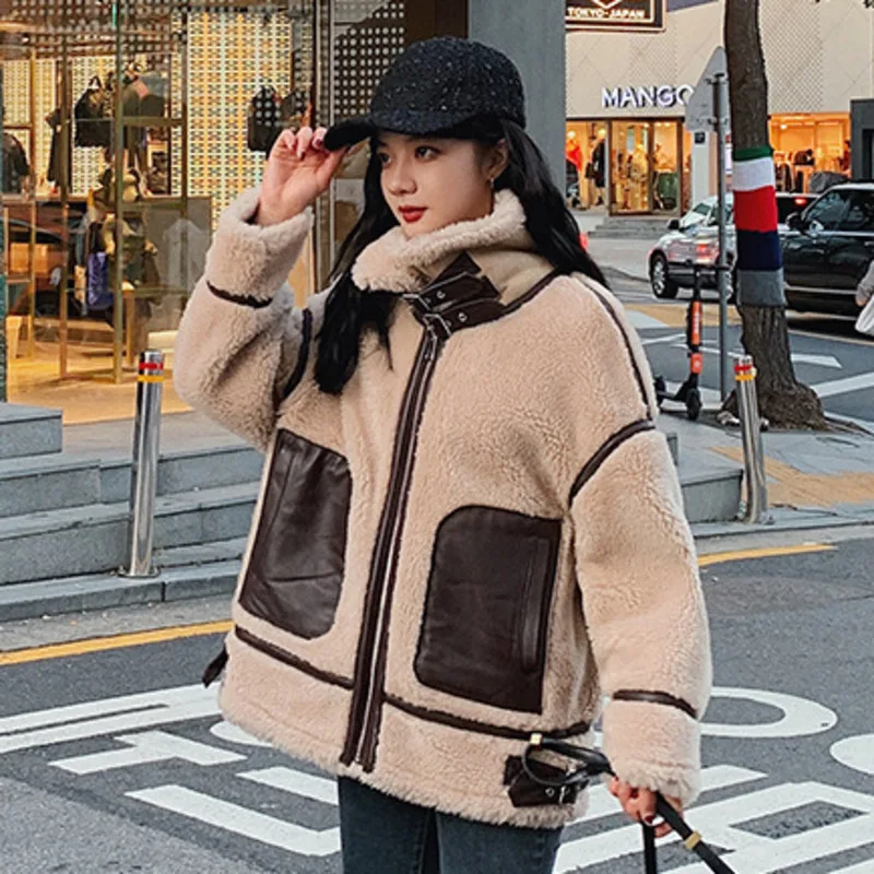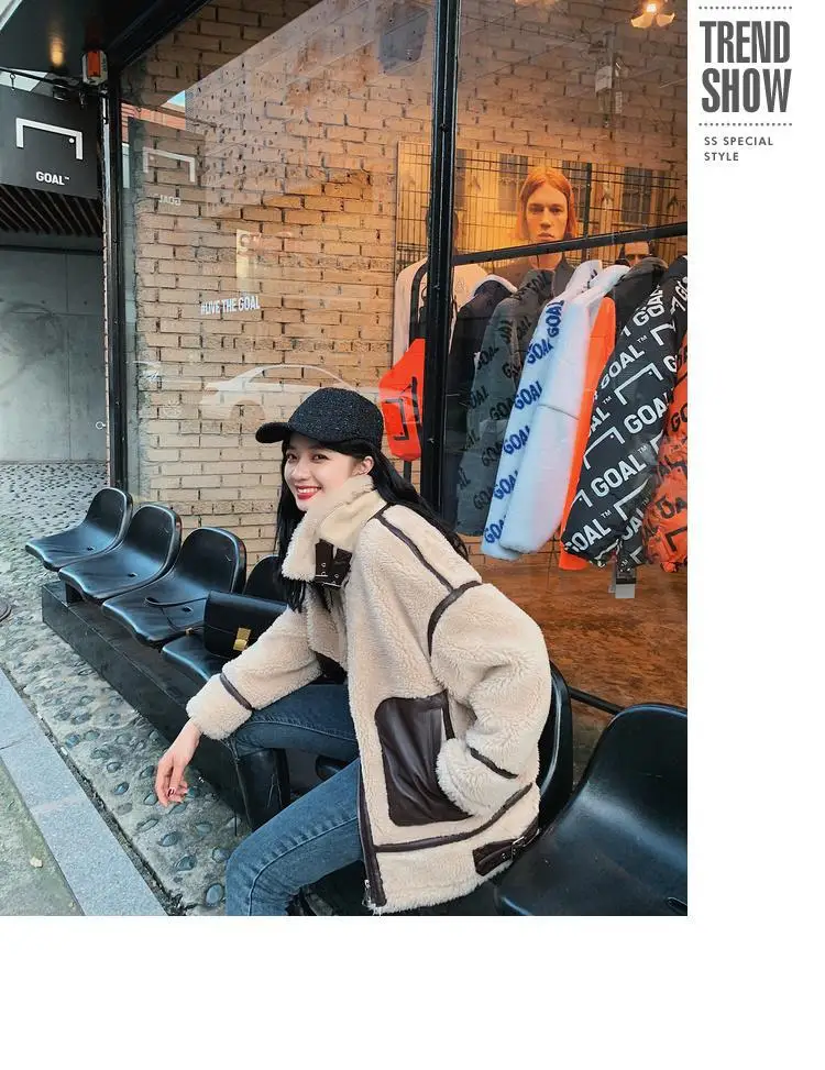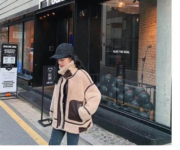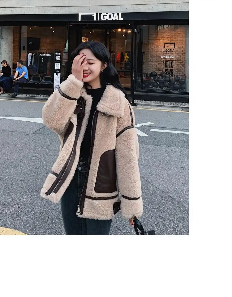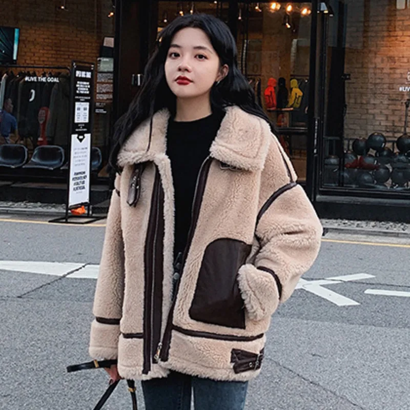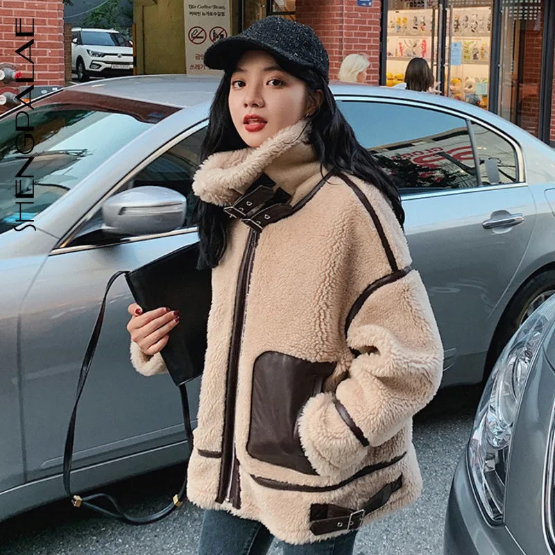 SHENGPALAE 2020 зимнее новое пальто из меха ягненка женское короткое лоскутное пальто на молнии большого размера толстое теплое шерстяное пальто модное ZT1383