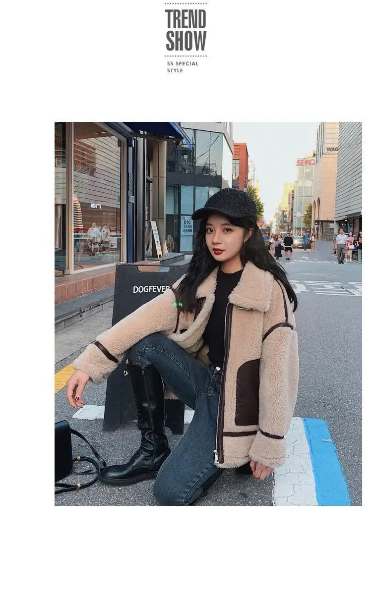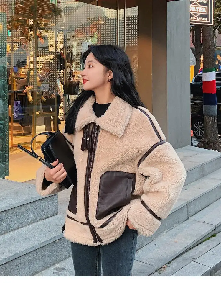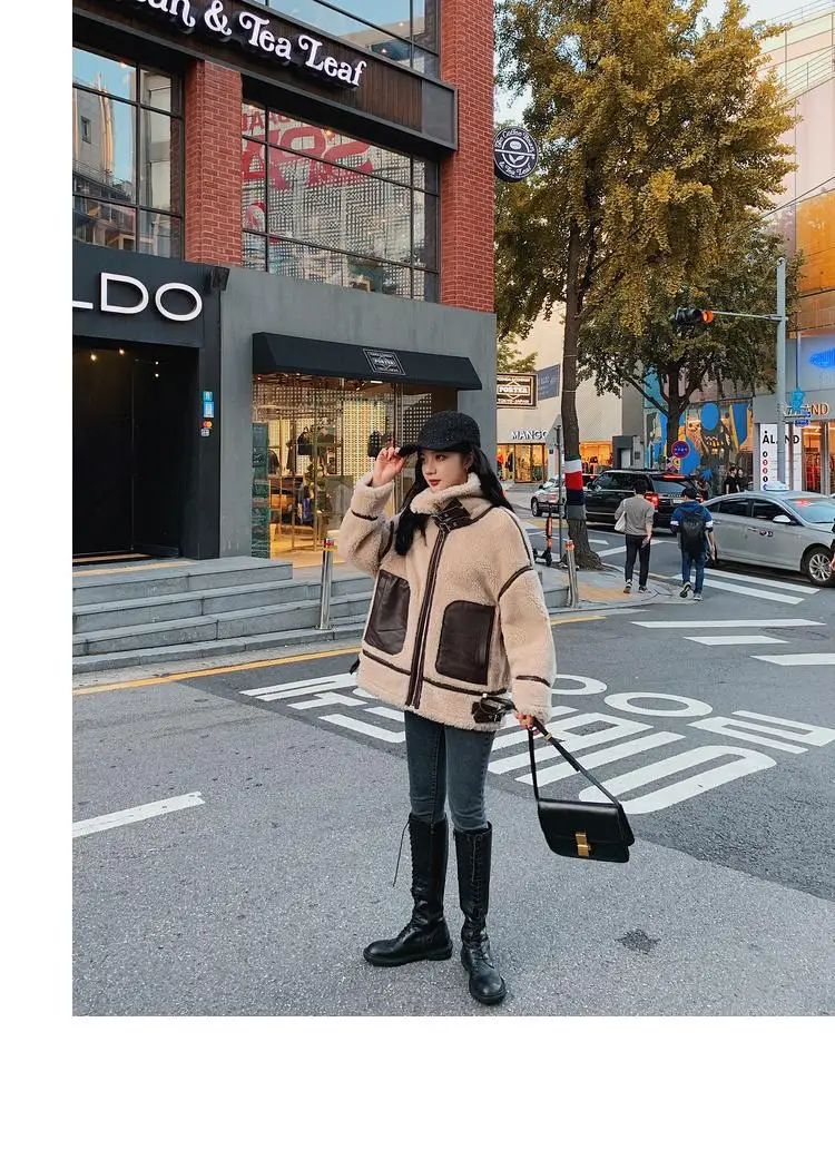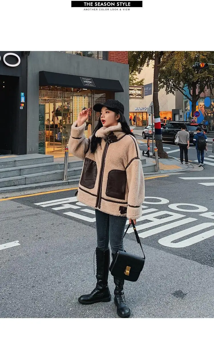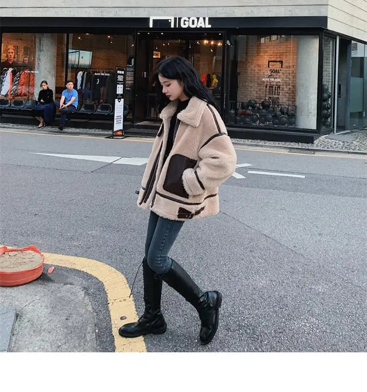 SHENGPALAE 2020 зимнее новое пальто из меха ягненка женское короткое лоскутное пальто на молнии большого размера толстое теплое шерстяное пальто модное ZT1383
