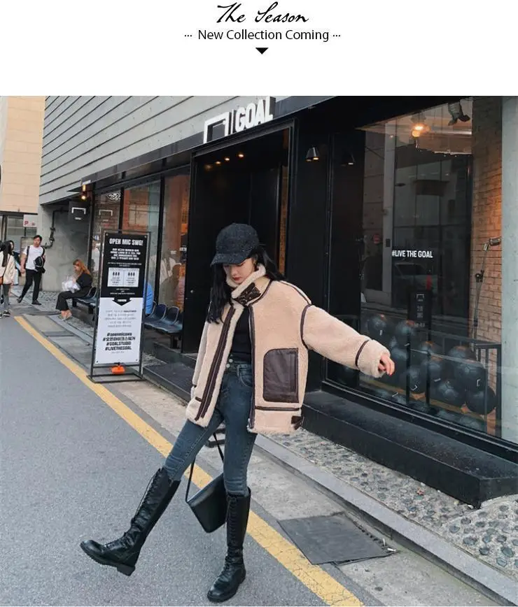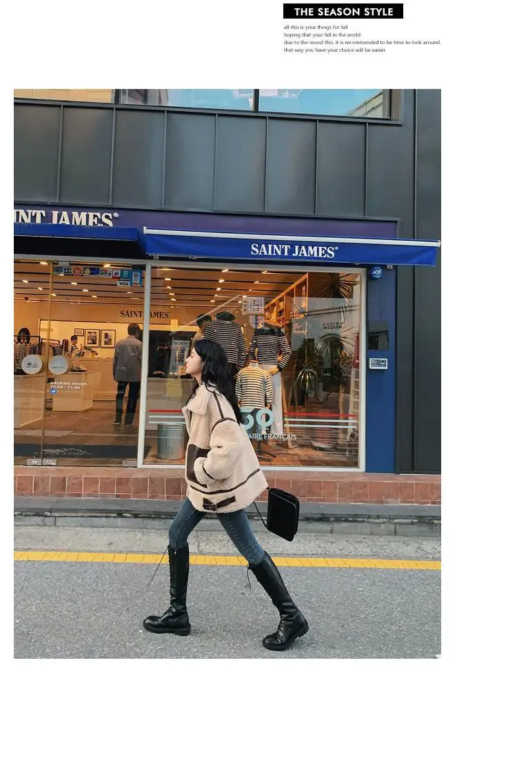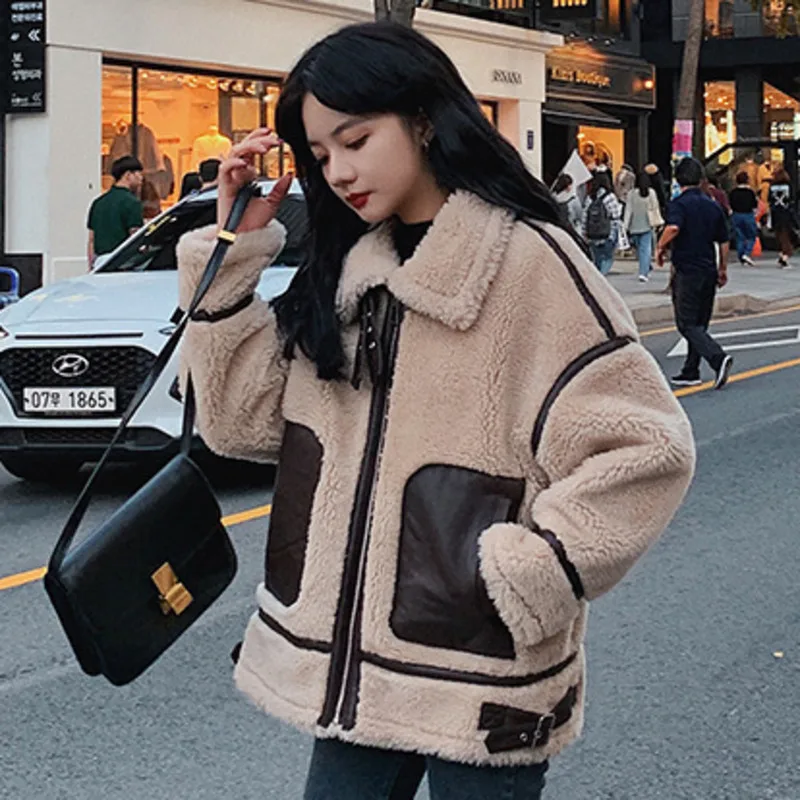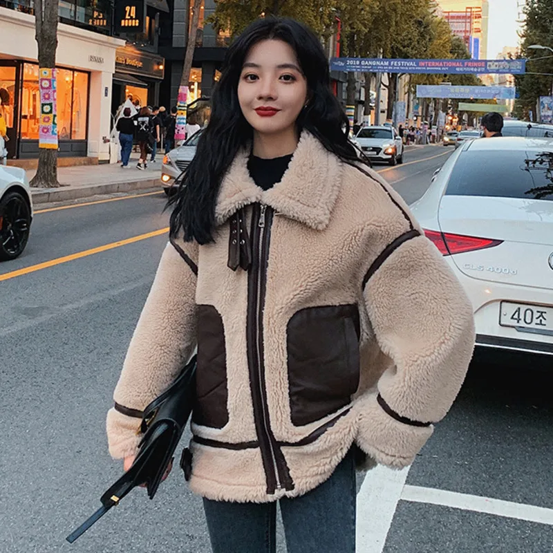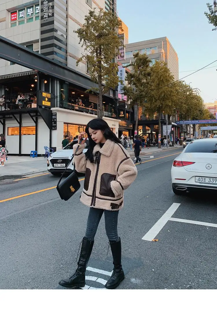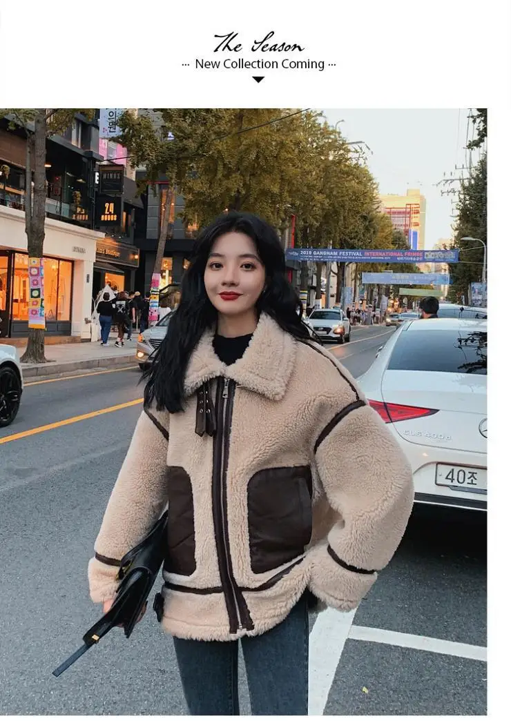 SHENGPALAE 2020 зимнее новое пальто из меха ягненка женское короткое лоскутное пальто на молнии большого размера толстое теплое шерстяное пальто модное ZT1383
