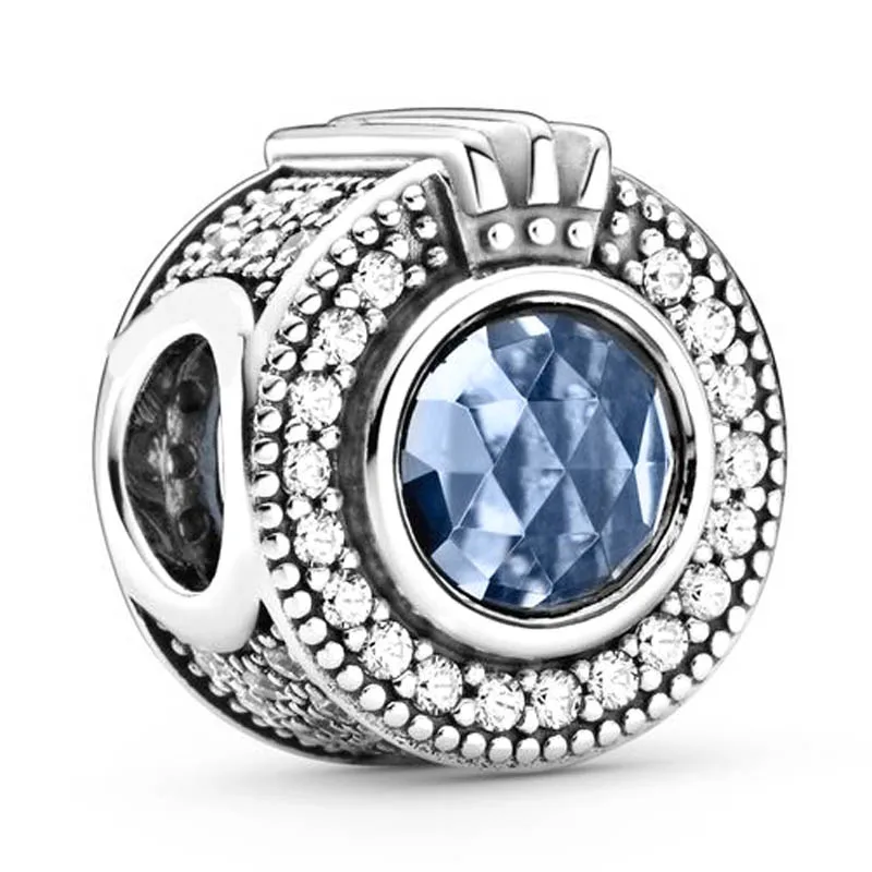 Оригинальный Новый S925 очаровательные синие шармы снежинки Корона ...