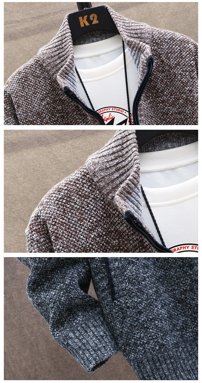 2020 New Men Winter Thick Knitted Sweater Coat Long Sleeve Cardigan Fleece Sweaters for Male Casual Outwear Clothing