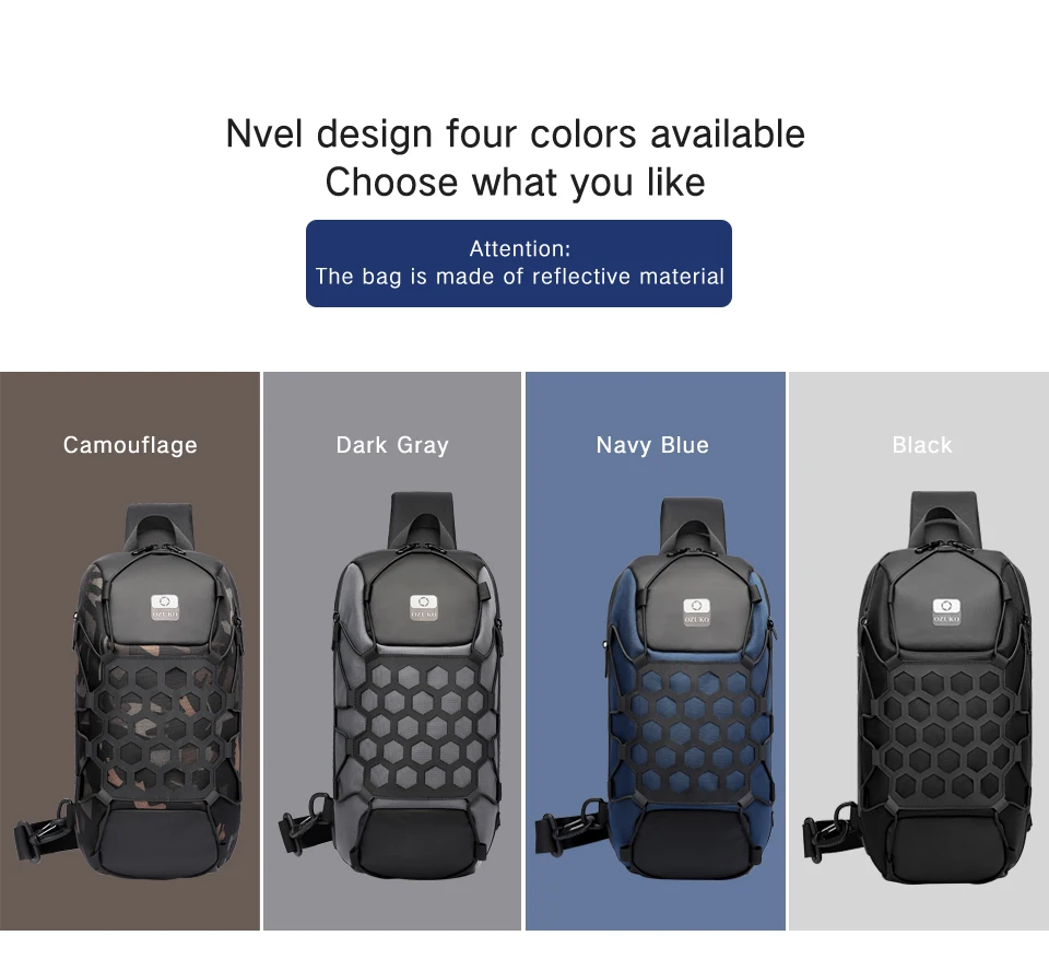 Item Name1Multifunction Waterproof Reflective Men Chest Bags