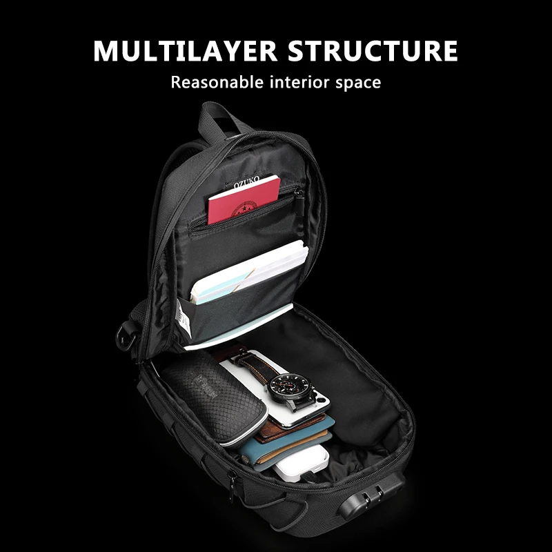 Нагрудные сумки OZUKO для мужчин, многофункциональная мужская сумочка на плечо с защитой от кражи, водонепроницаемый слинг-мессенджер, мужская сумка через плечо с USB-зарядкой