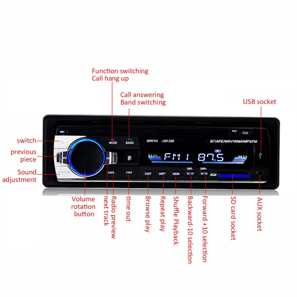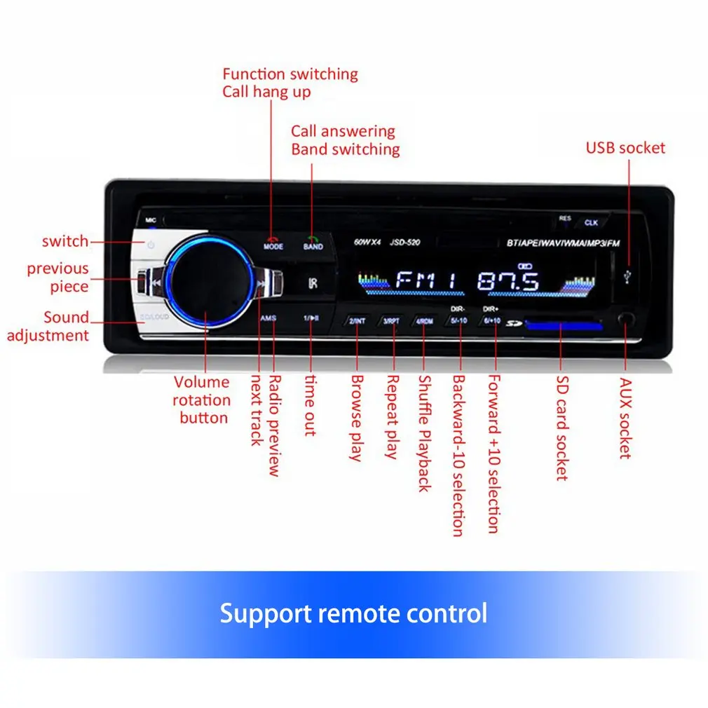 Универсальный Автомобильный MP3-плеер, 12 В, стерео, FM, AUX, входной приемник, SD, USB, MP3-радио, встроенный в приборную панель