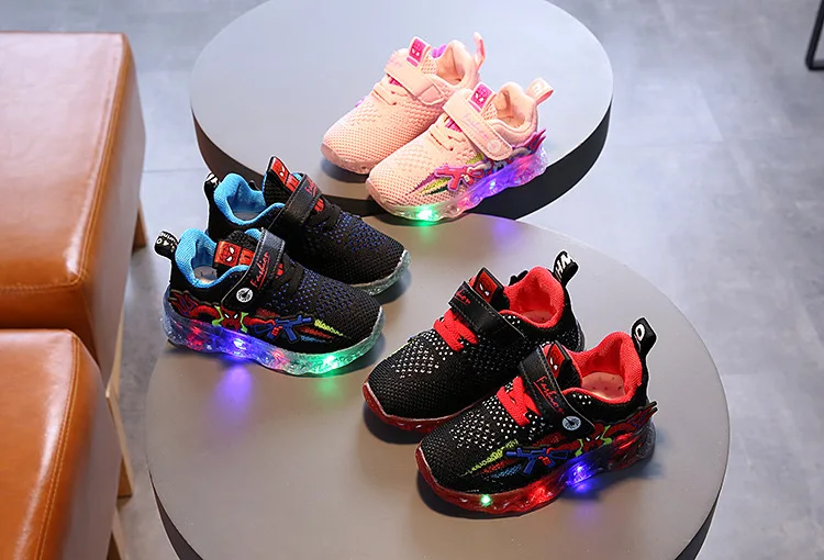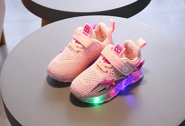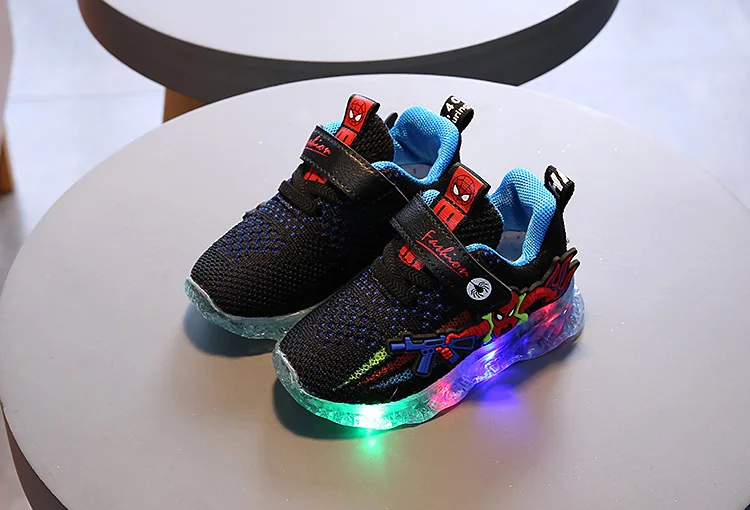 Новая детская спортивная обувь для детей с светильник Повседневная дышащая обувь на нескользящей подошве; Спортивная обувь Tenis Infantil LED с человеком-пауком для маленьких мальчиков кроссовки