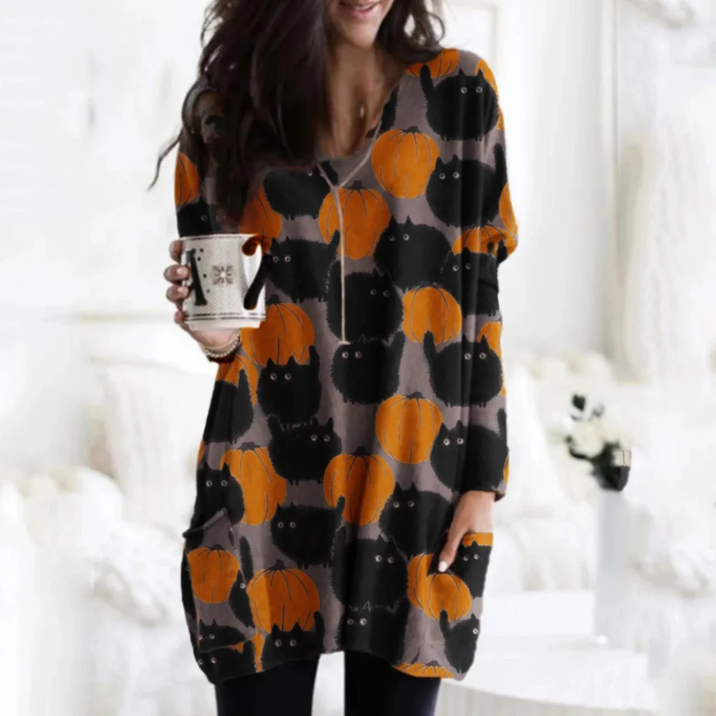 Женская Повседневная рубашка, с изображением фонарика, призрака блузка с символикой Хэллоуина, рубашка с рисунком тыквы, T2G, костюмы с длинным рукавом