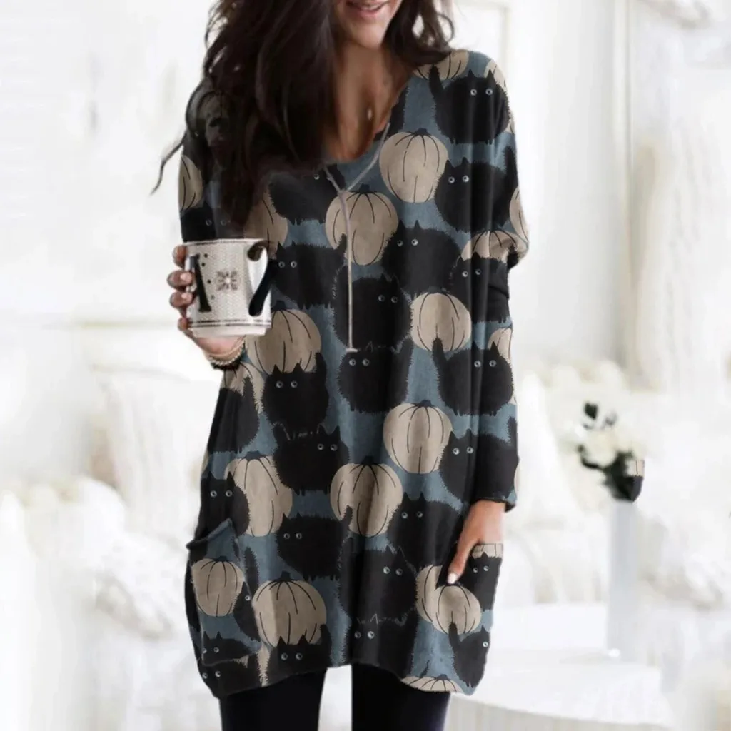 Женская футболка с длинным рукавом, с принтом в виде оленя, кота